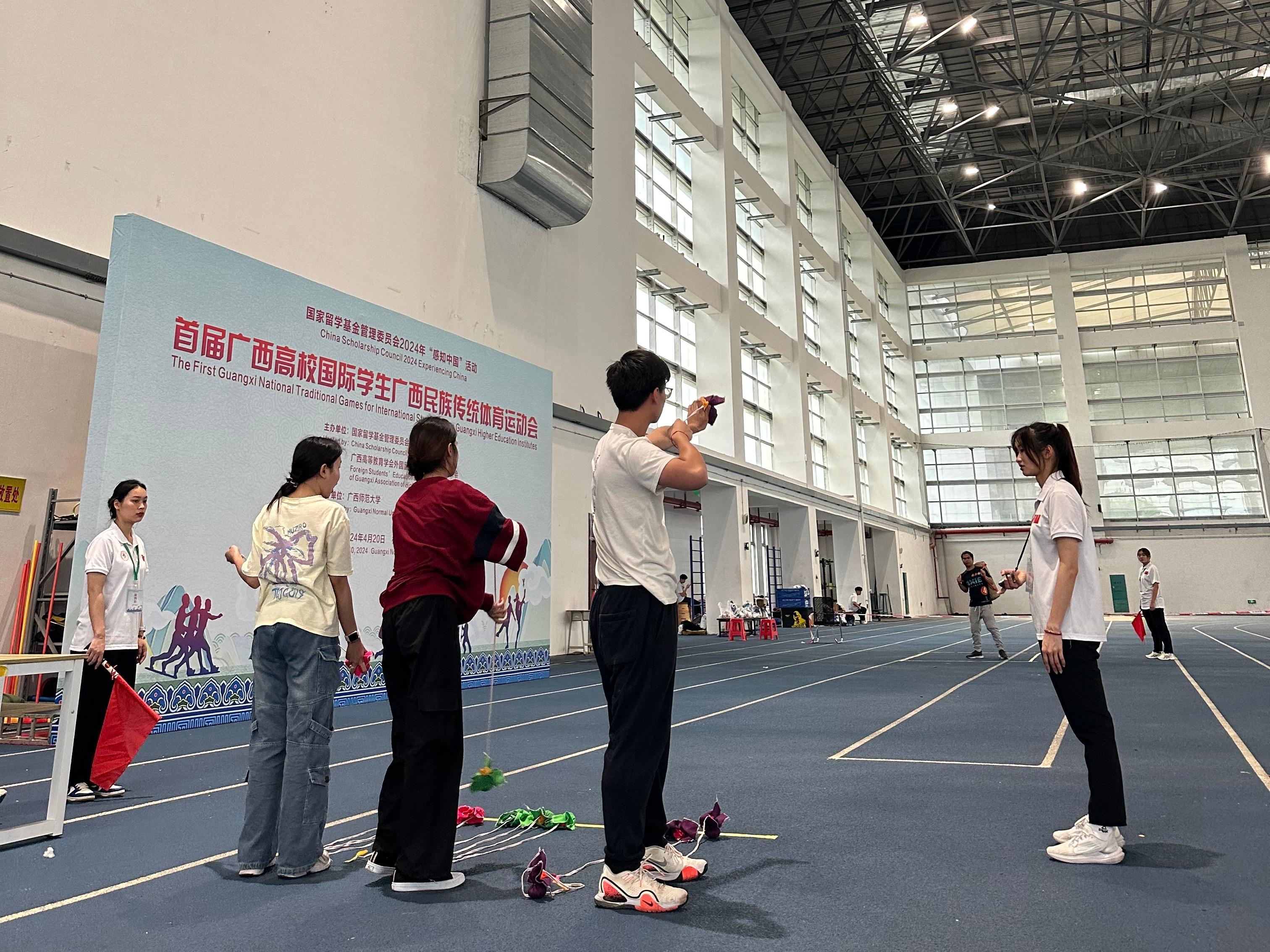 为深化伟德官网国际学生对广西区情的了解,强化实践活动的育人效果。4月20—21日,首届广西高校国际学生广西民族传统体育运动会暨中国文化体验活动在广西师范大学举办,伟德官网金艾伦等国际学生代表参加活动。
