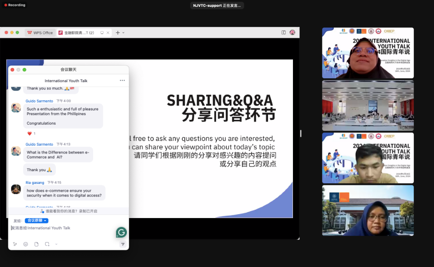 活动期间,马来西亚怡保职业技术学院、泰国环球工商管理技术学院、印尼卡扎马达大学、柬埔寨智慧大学、菲律宾黎刹科技大学的青年学生代表与伟德官网5名学生代表在线上与线下热烈互动,围绕“互联网时代下的市场创新启发”主题畅所欲言,共同探讨市场商业创新的最新趋势,讨论数字时代带来的机遇和挑战以及如何利用数字技术来创造新的商业模式、产品和服务。