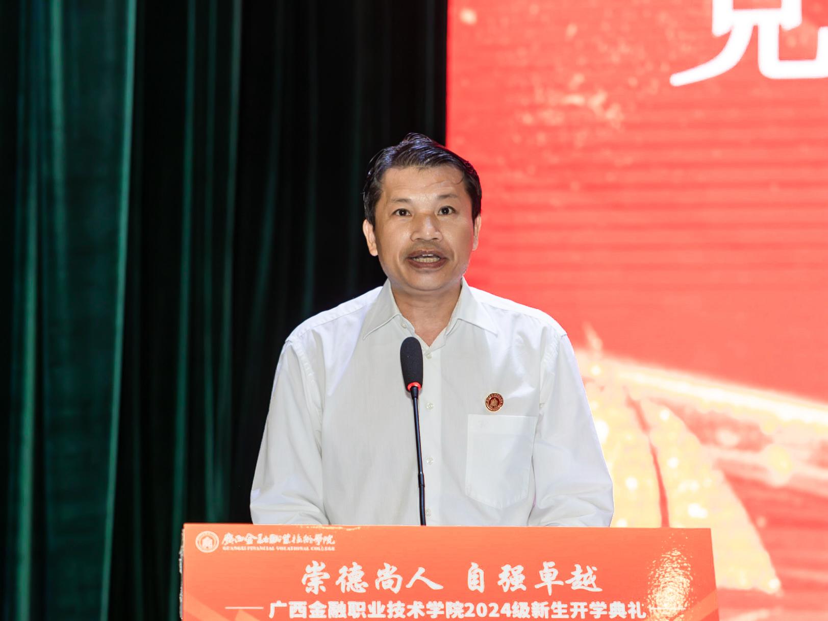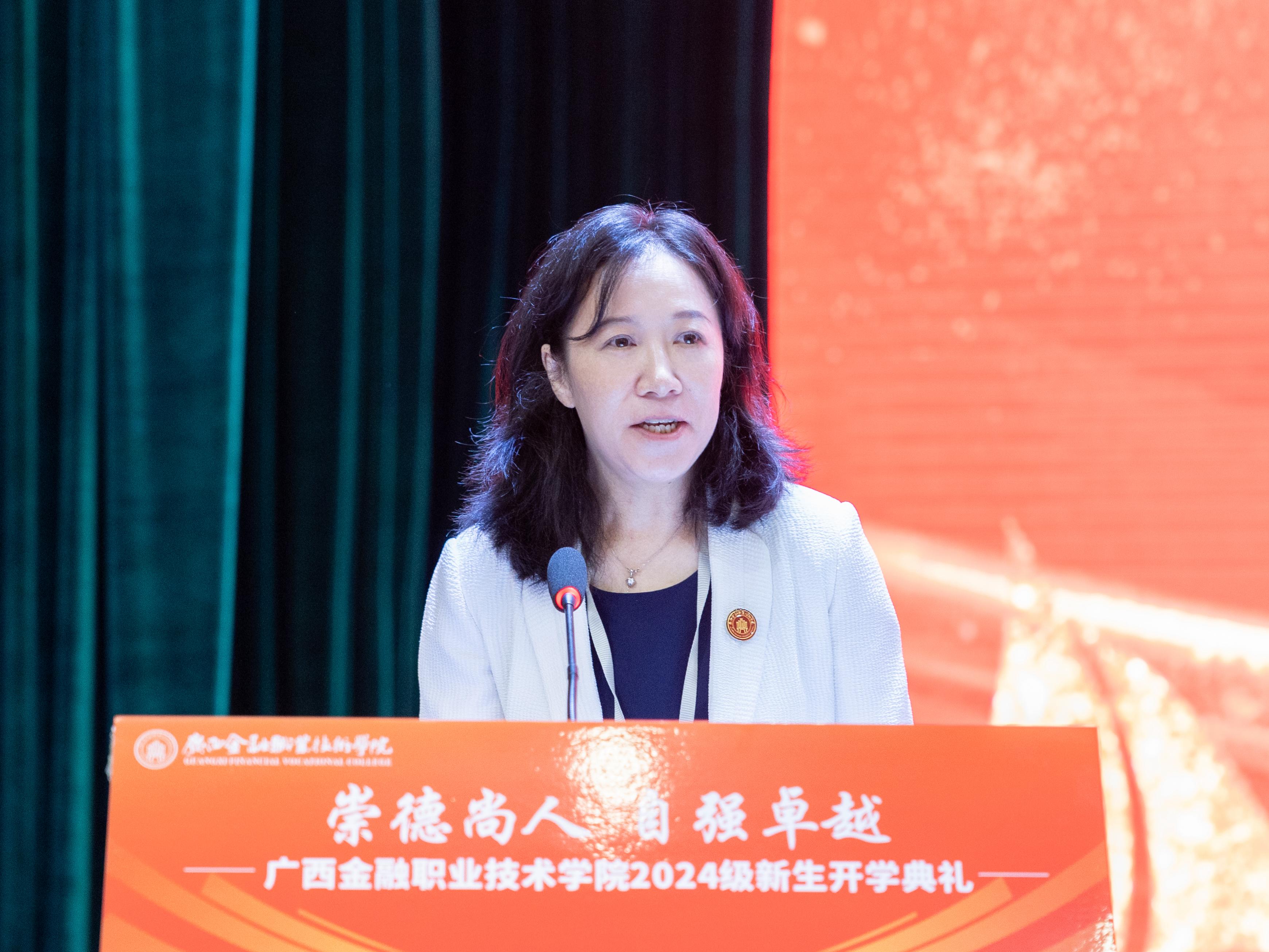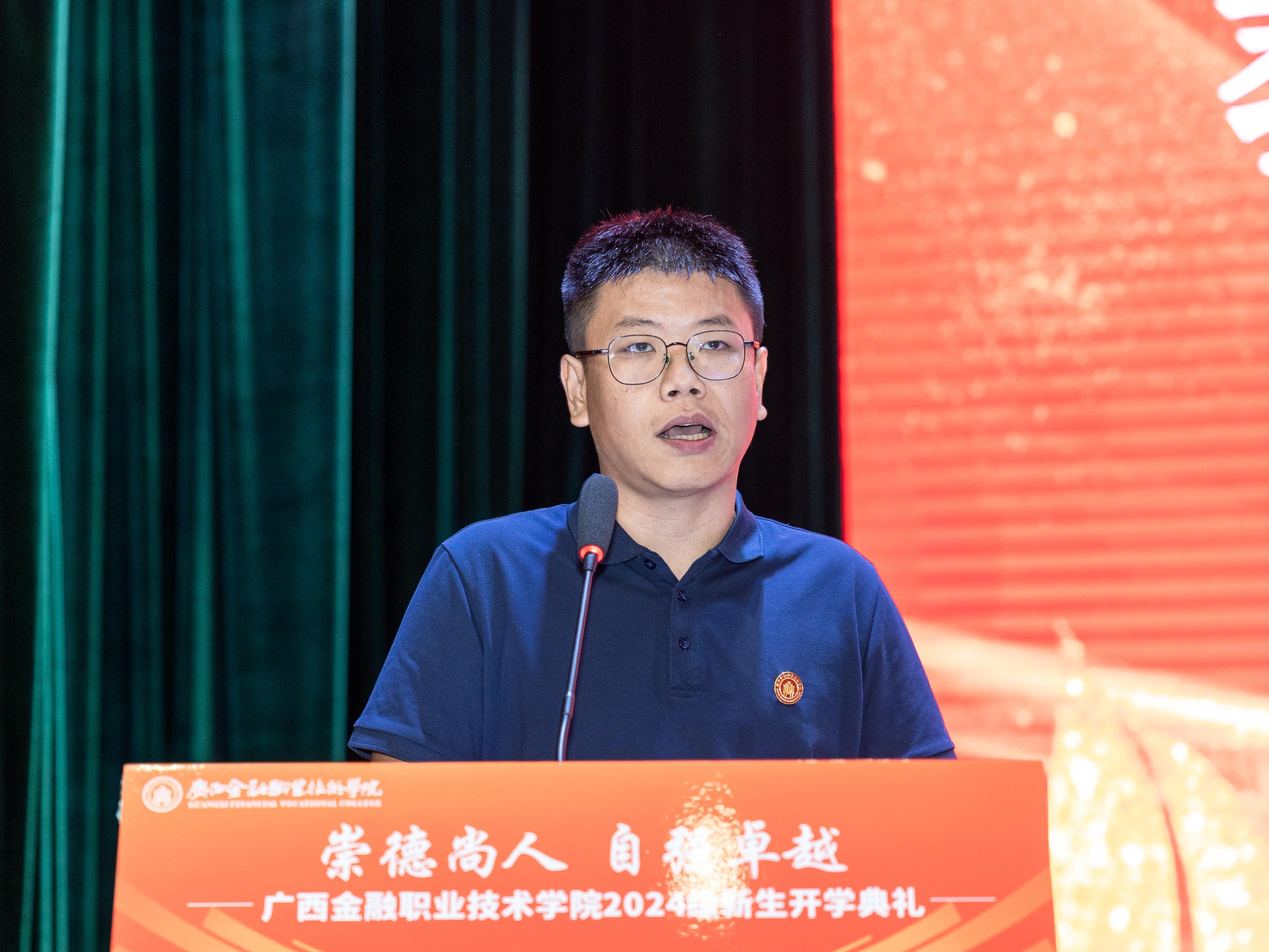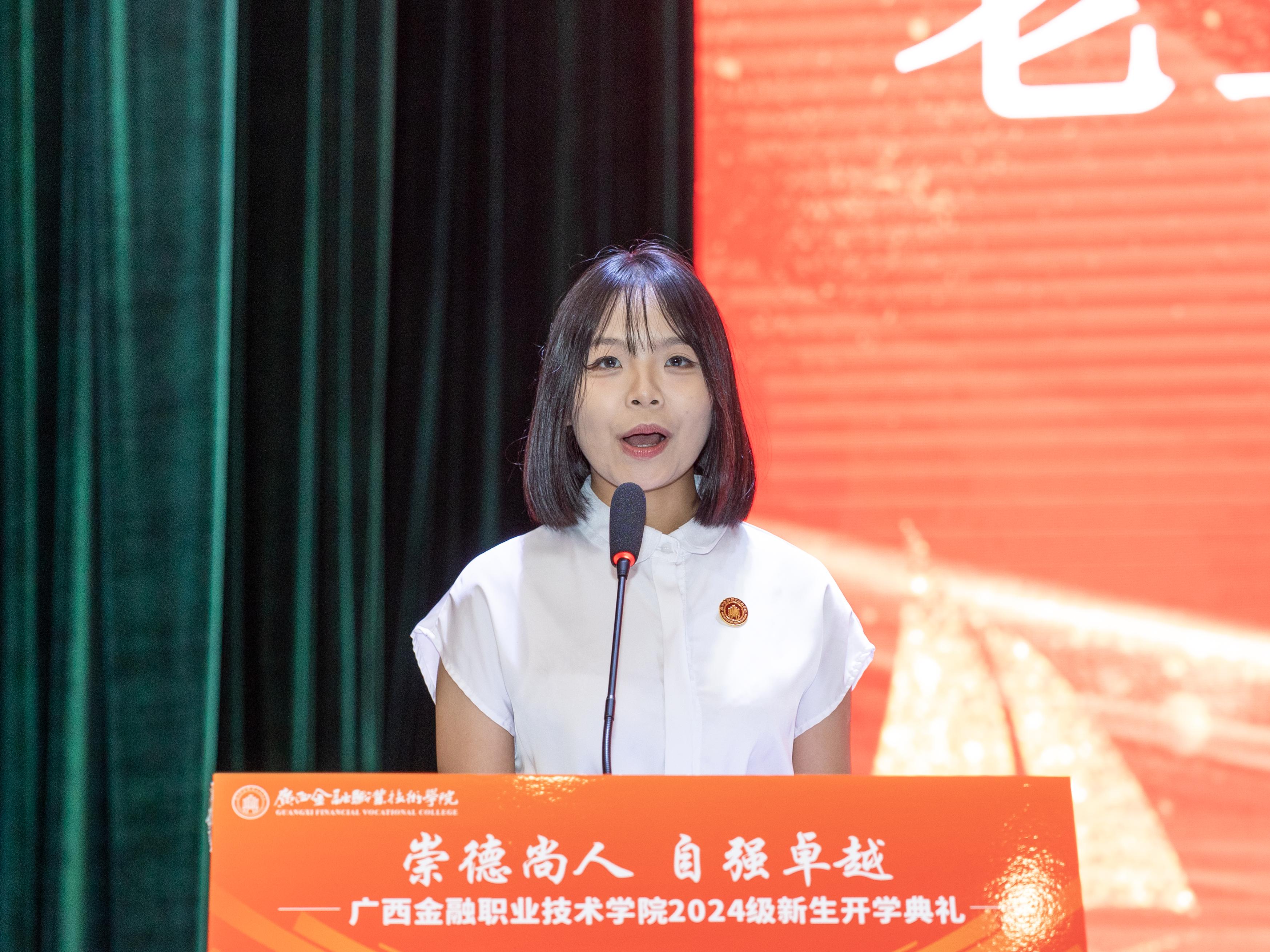 金融学院施维作为教师代表发言。对新生提出几点希望,首先是尽快融入金职院这个温暖的大家庭,适应新的学习和生活环境;其次关注身心健康,始终保持积极向上的心态;最后是珍惜学习时光,勤奋刻苦、努力钻研,早日成为有理想、有本领、有担当的新青年。