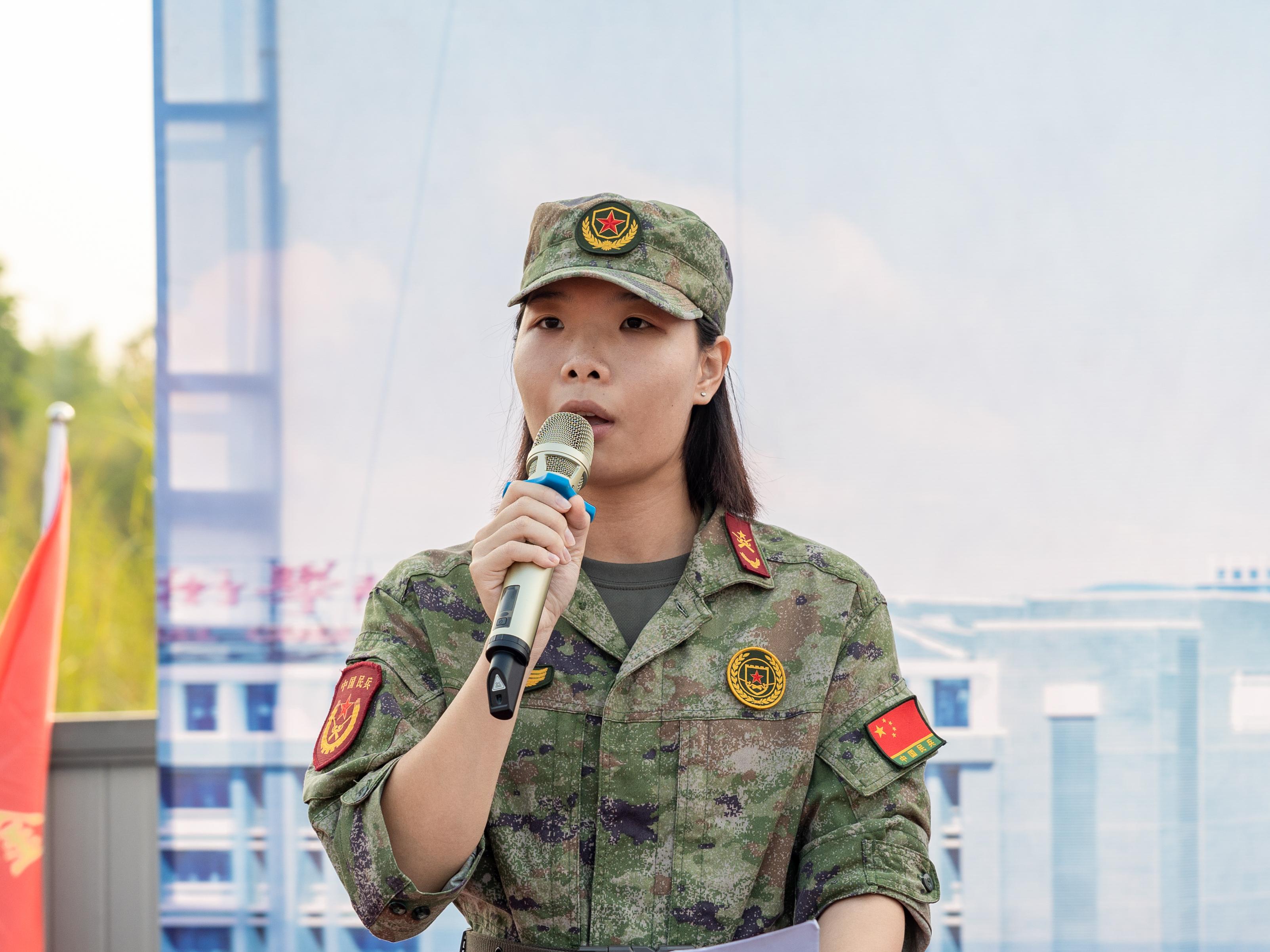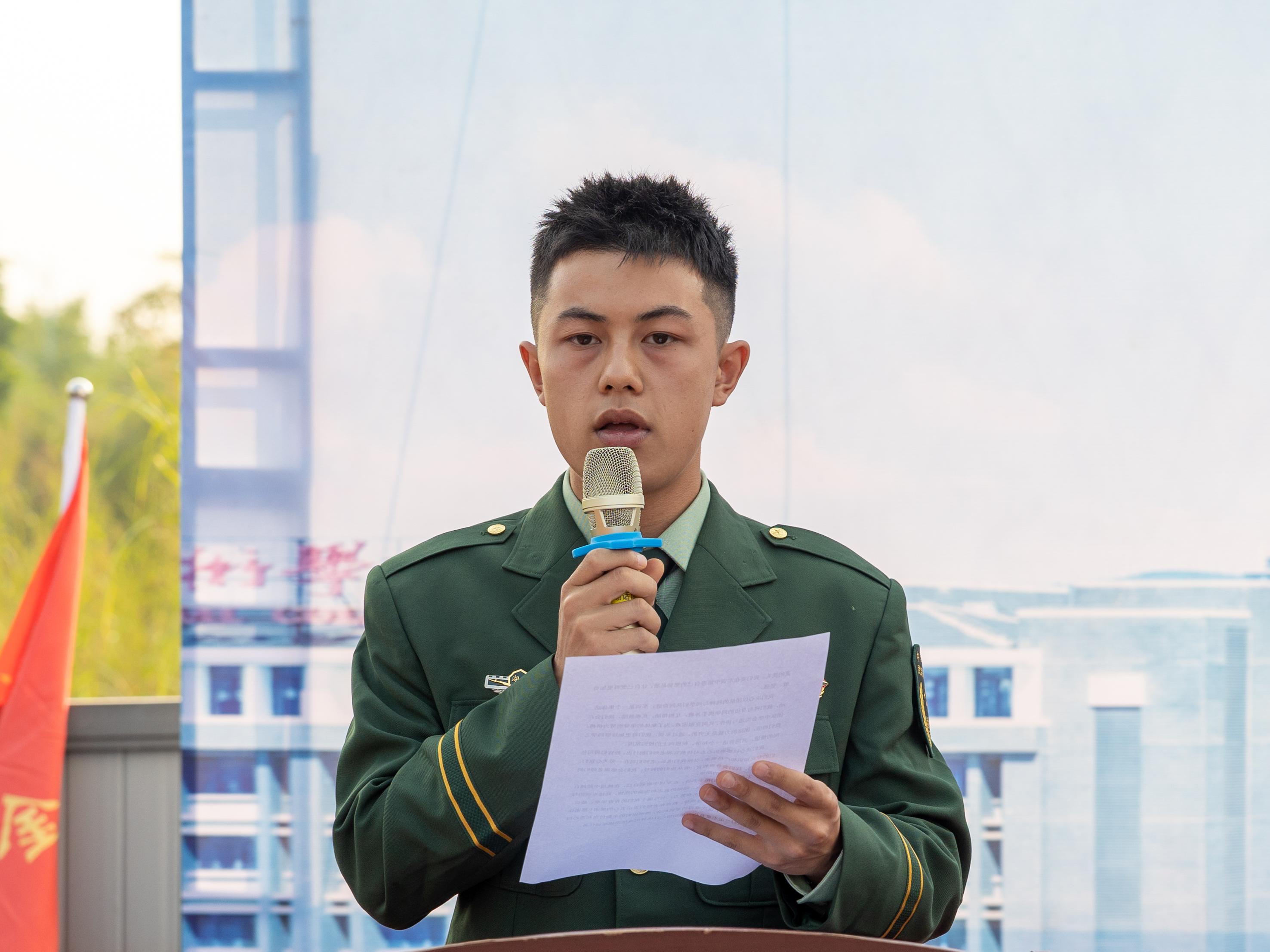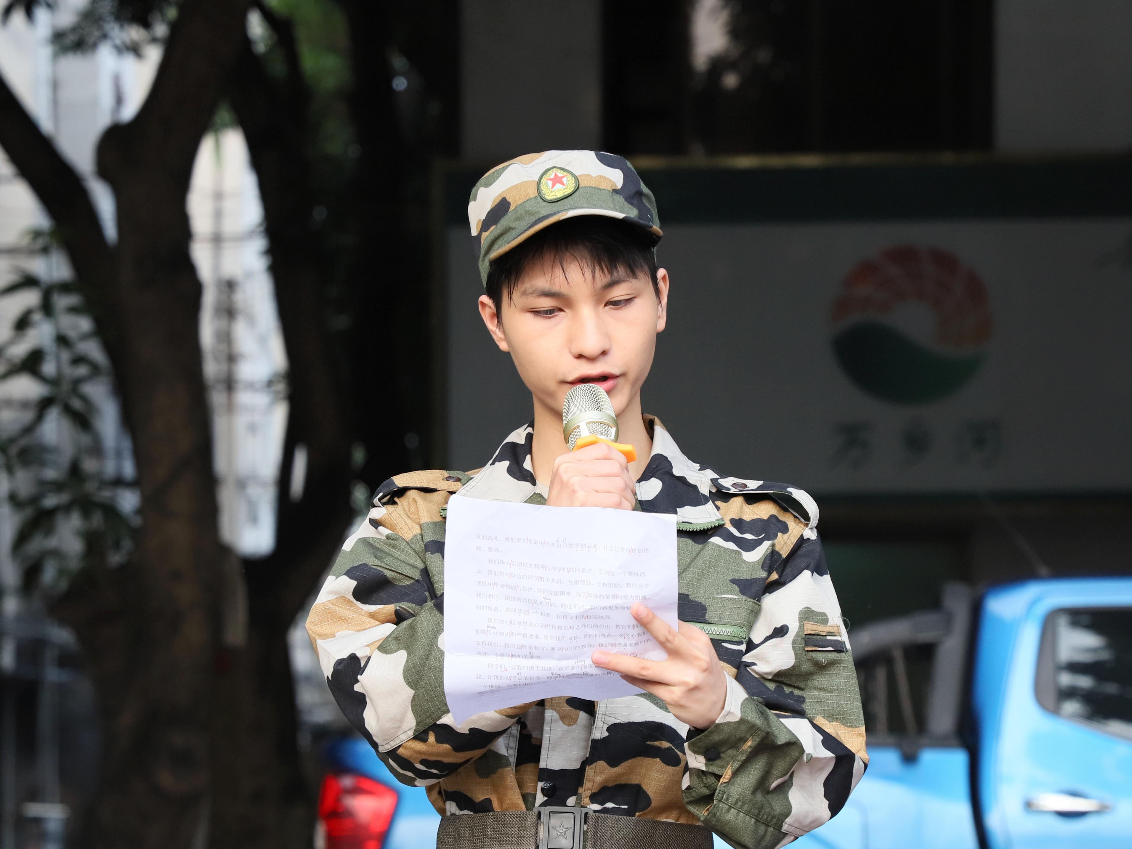 会计学院大数据与会计2402班周志荣同学、数字贸易学院(工商管理学院)跨境电子商务2402班莫可凡同学作为学生代表,他们庄严承诺,在军训中将尊重教官、服从命令,克服困难,培养吃苦耐劳的精神,并希望在这次军训中展现出新时代大学生的风采。