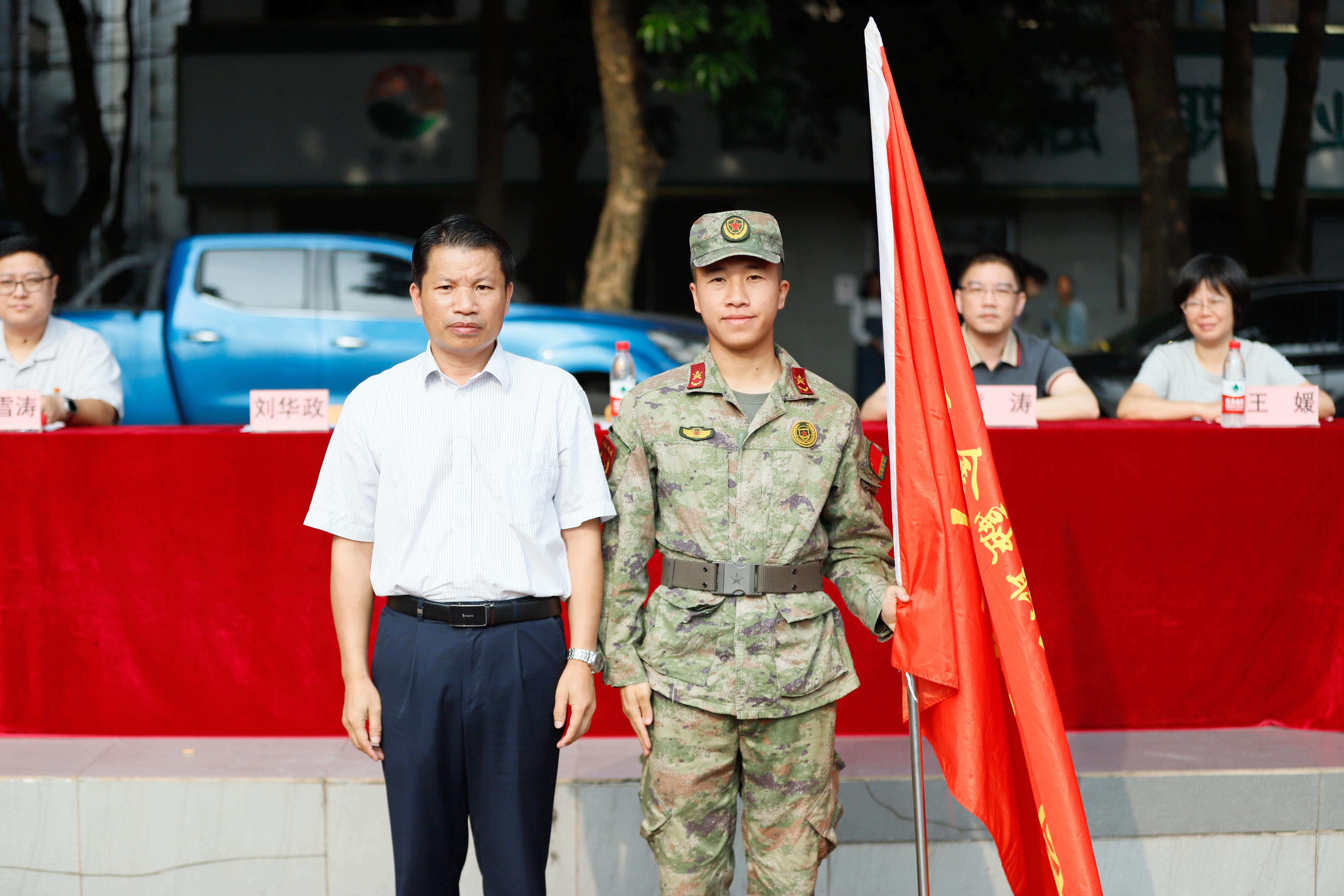 会上,莫海燕校长和刘华政副书记向承训单位授军训团团旗,鲜红的旗帜高高飞扬,标志着伟德官网2024级新生军训正式拉开帷幕。