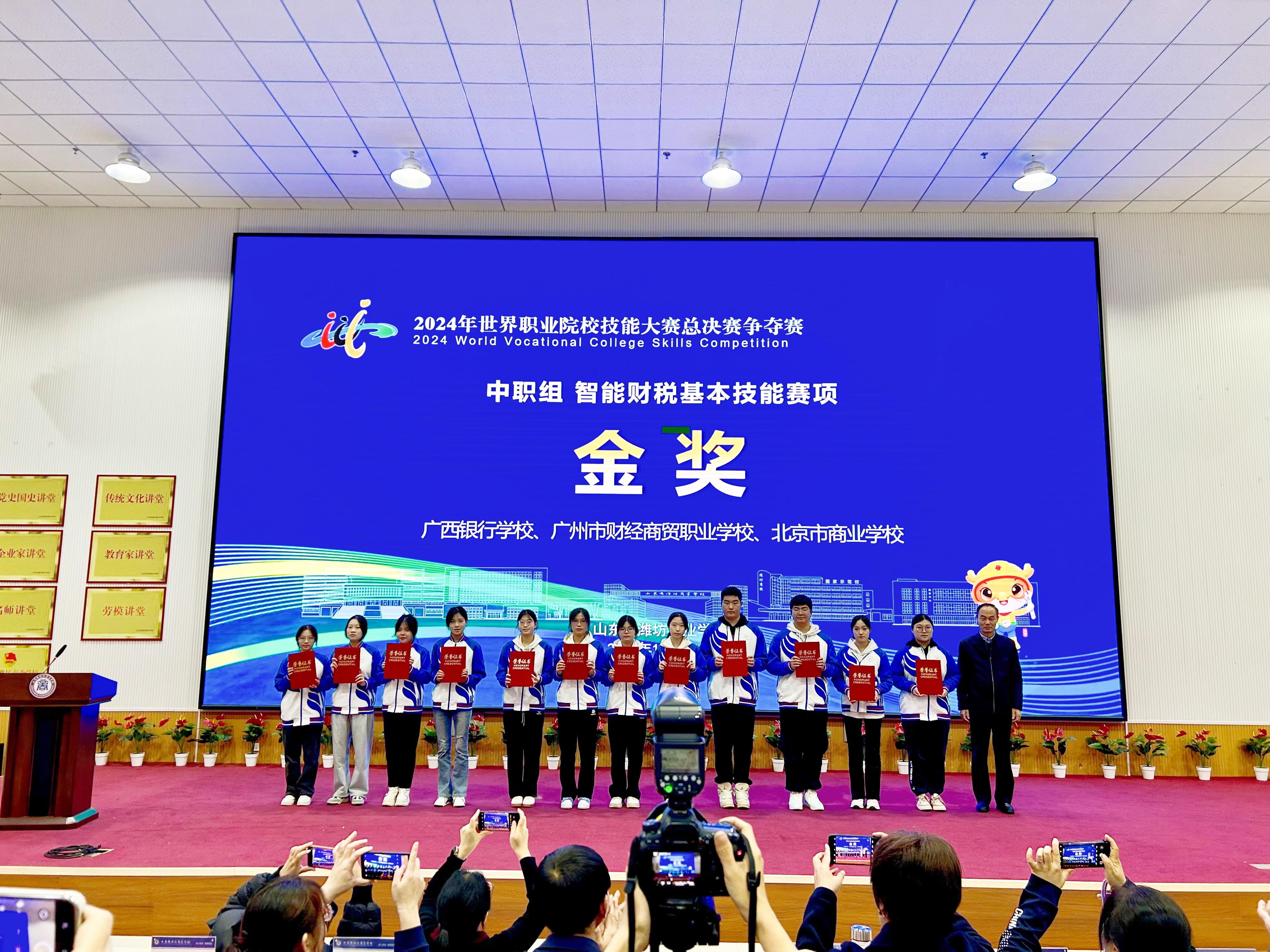 10月27日,2024年世界职业院校技能大赛总决赛争夺赛中职组《智能财税基本技能》赛项在山东省潍坊商业学校圆满落下帷幕。在此次技能比拼的激烈舞台上,广西银行学校代表队作为代表广西出征的两支队伍之一,凭借着卓越的表现和精湛的技能,成功斩获全国金奖,实现伟德官网和广西职业院校在该赛项的重大突破!