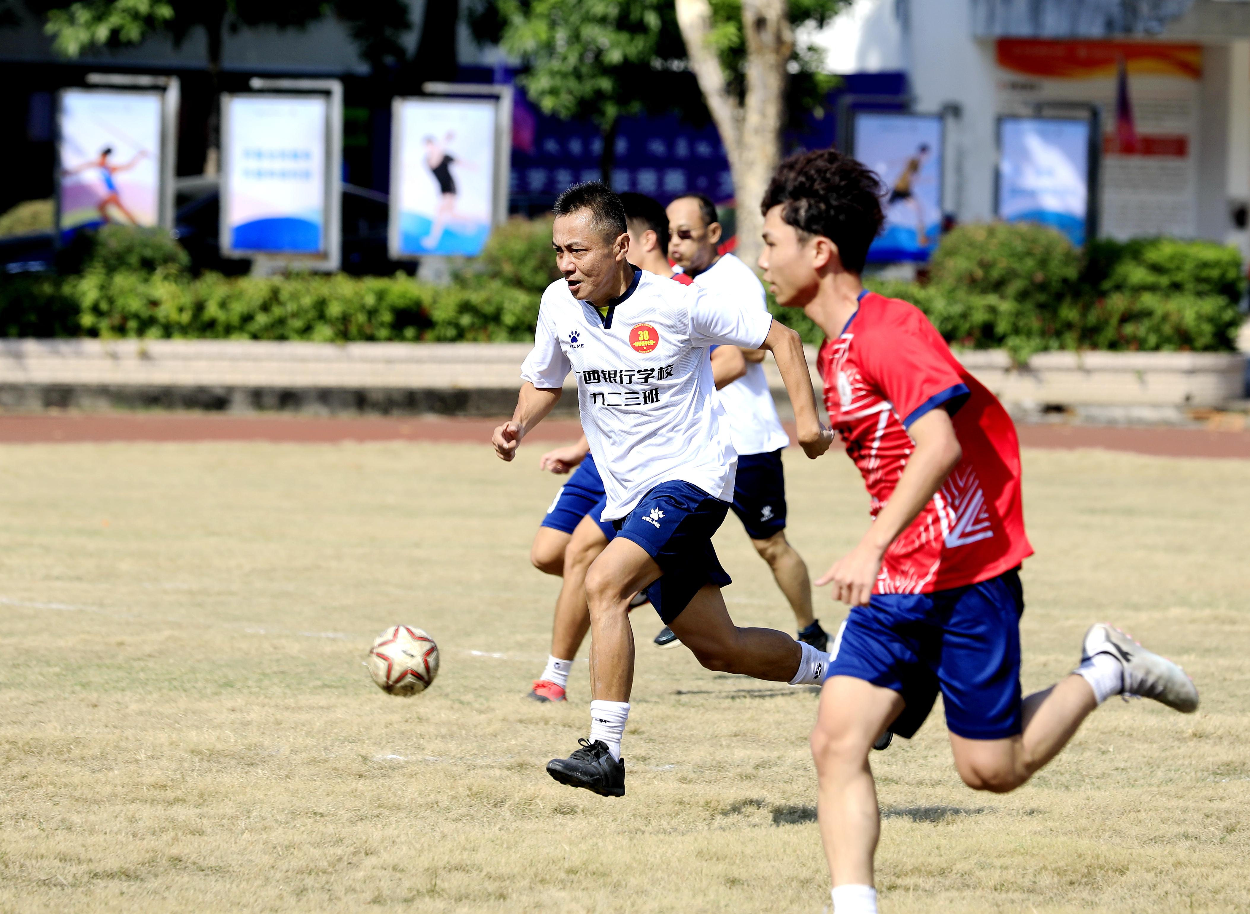 毕业30周年的923班校友,在广西各个金融战线上发光发热,回忆起当年在校求学时连续两年获校足球联赛冠军,仍是激情澎湃。校友办老师们精心策划了这场球赛,为伟德官网923班校友回校活动献上了一份特殊的礼物。