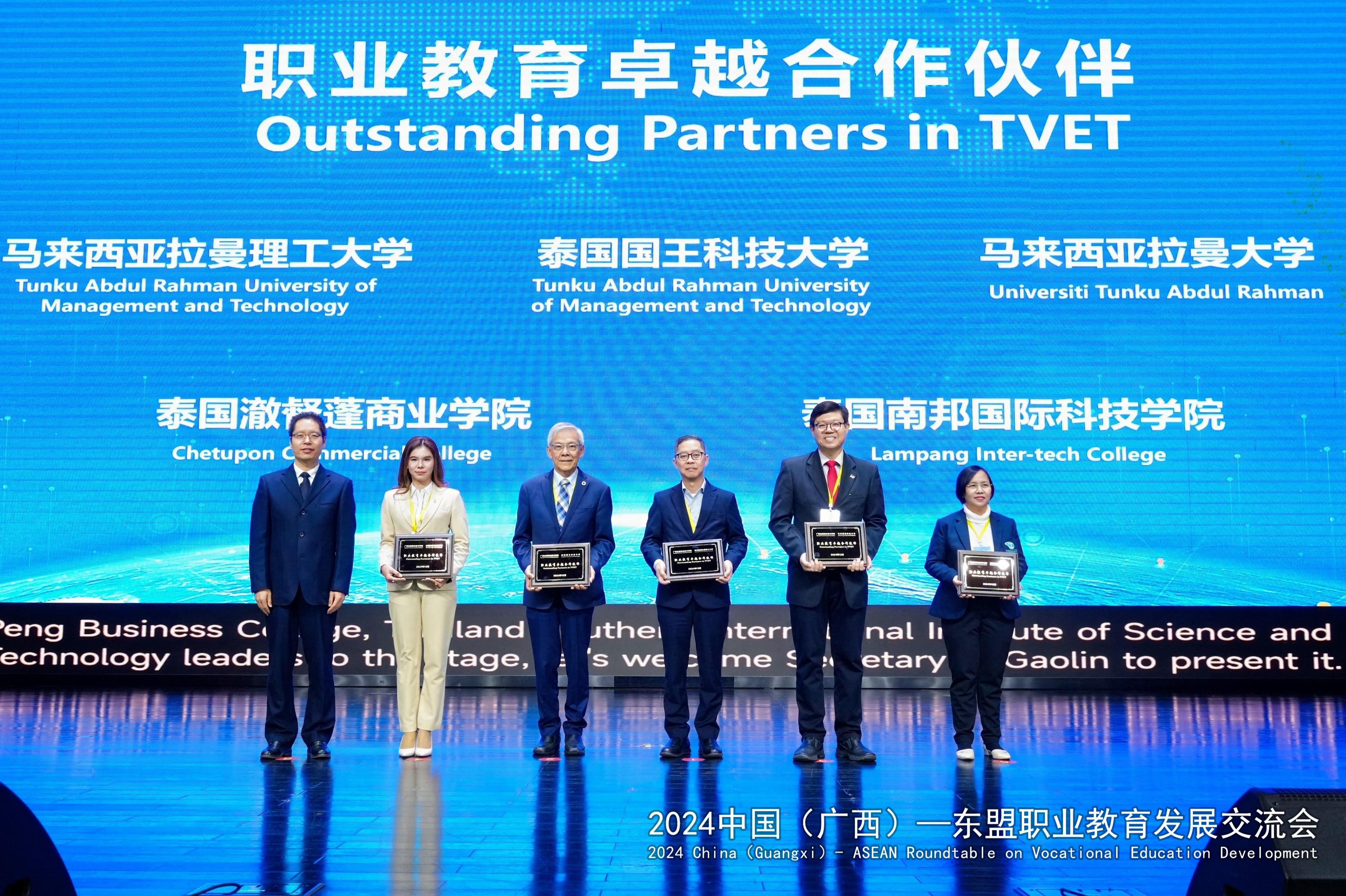会上,学校与国内外的11所院校和企业达成更加紧密的职业教育卓越合作伙伴关系,以校校共建、校企合作方式,以美美与共、开放合作之姿,举行了携手合作仪式,各方将持续深挖在职业教育领域多方面的合作,共同为“一区两地一园一通道”建设以及中国广西与东盟经济发展的人才培养发挥重要作用。