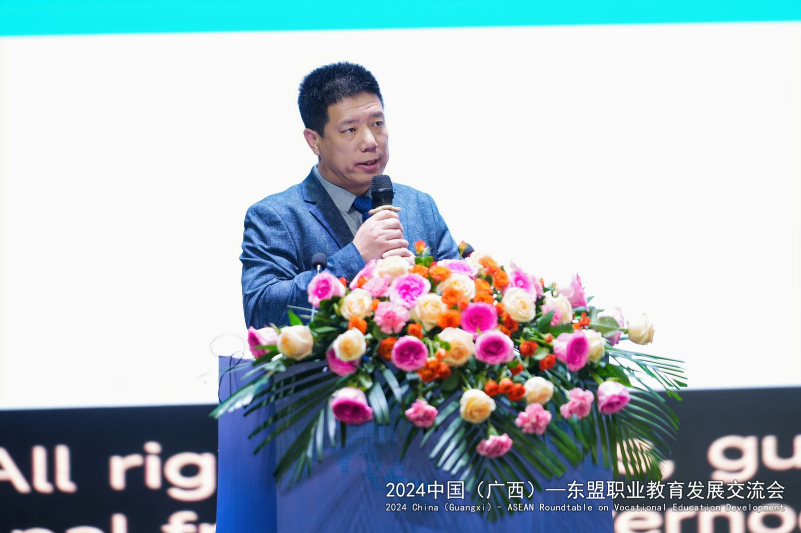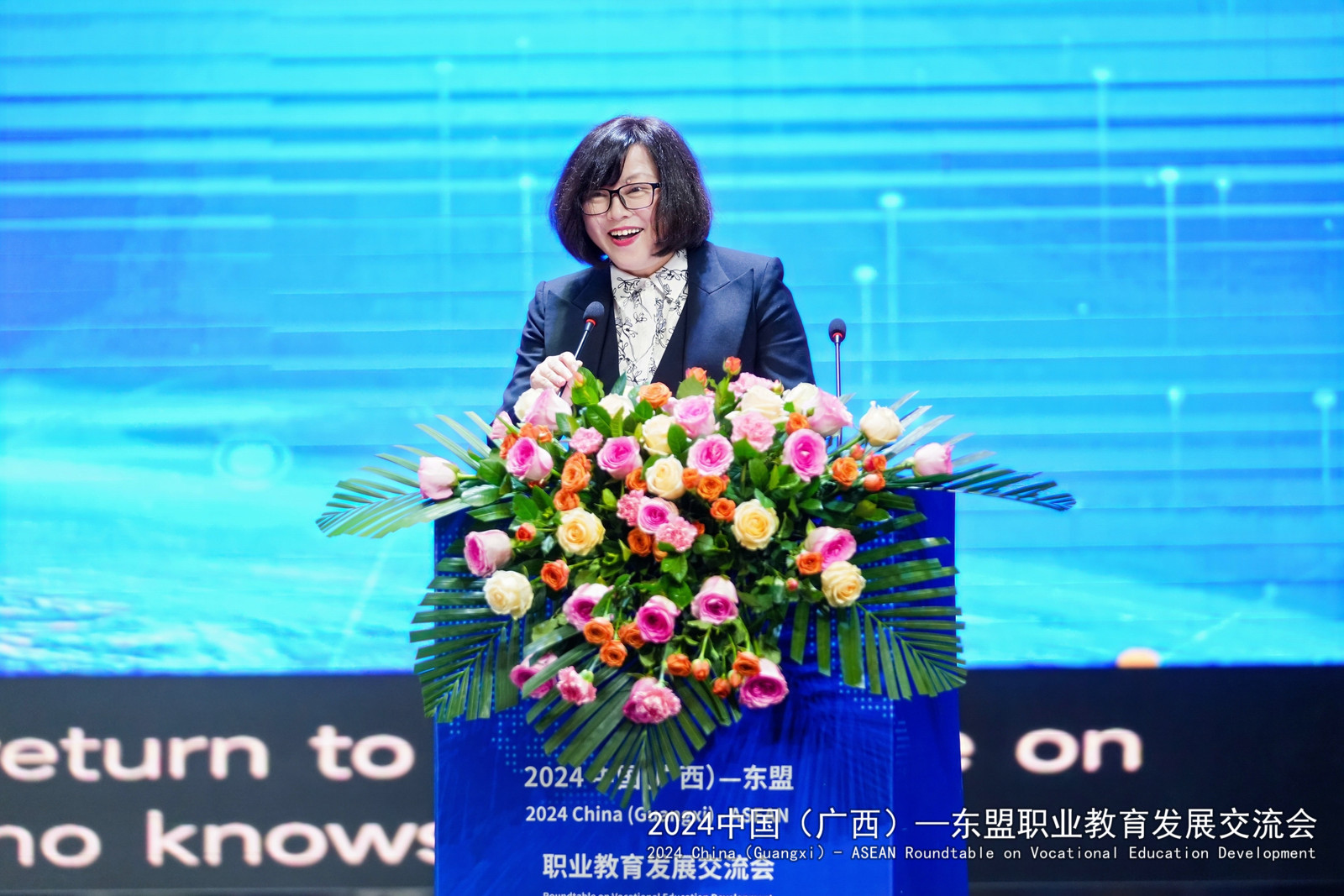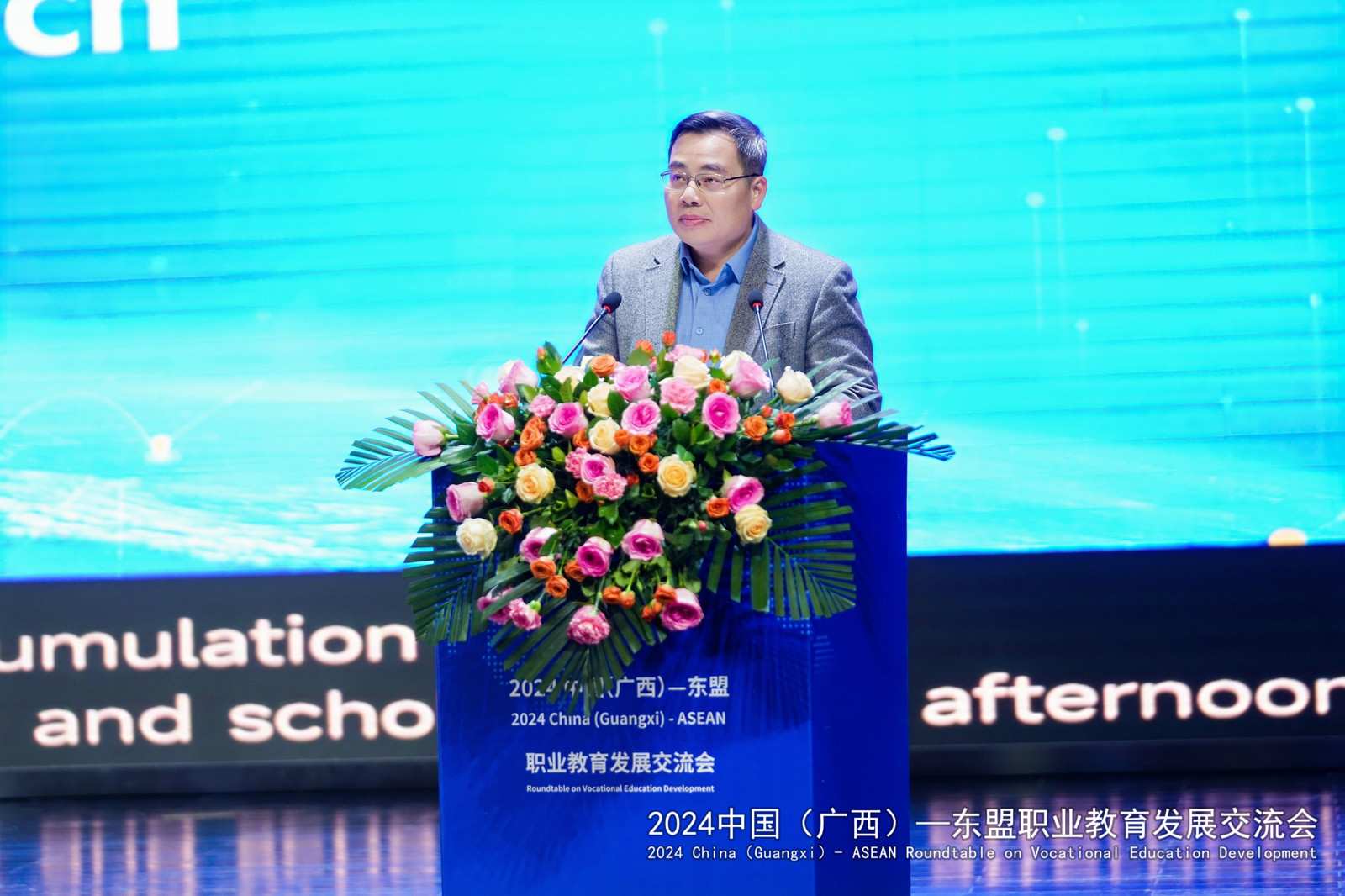 广西壮族自治区教育厅党组副书记、副厅长闫炳辰在讲话中指出,自治区教育厅积极响应“一带一路”倡议,把面向东盟开放合作摆在职业教育发展的重要位置。在面向东盟积极推进职业教育的开放合作与交流中,用心用力搭建沟通对话平台、用心用情拓展海外服务效能、用心用智搭建国际版人才培养立交桥、用心用爱为来桂留学生创造全域学习家园、用心用功持续探索教随产出、校企同行、产教共赢的广西职业教育国际化新模式。对于下一步推进中国广西与东盟的职业教育发展,闫炳辰提出了三点希望:一是希望进一步加强交流合作,优化中国(广西)—东盟国际化人才培养环境;二是希望通过加快改革创新,引领广西职业教育国际化高质量发展;三是希望不断加深山水情谊,搭建桂马、桂泰职业教育人文交流的友谊之桥。