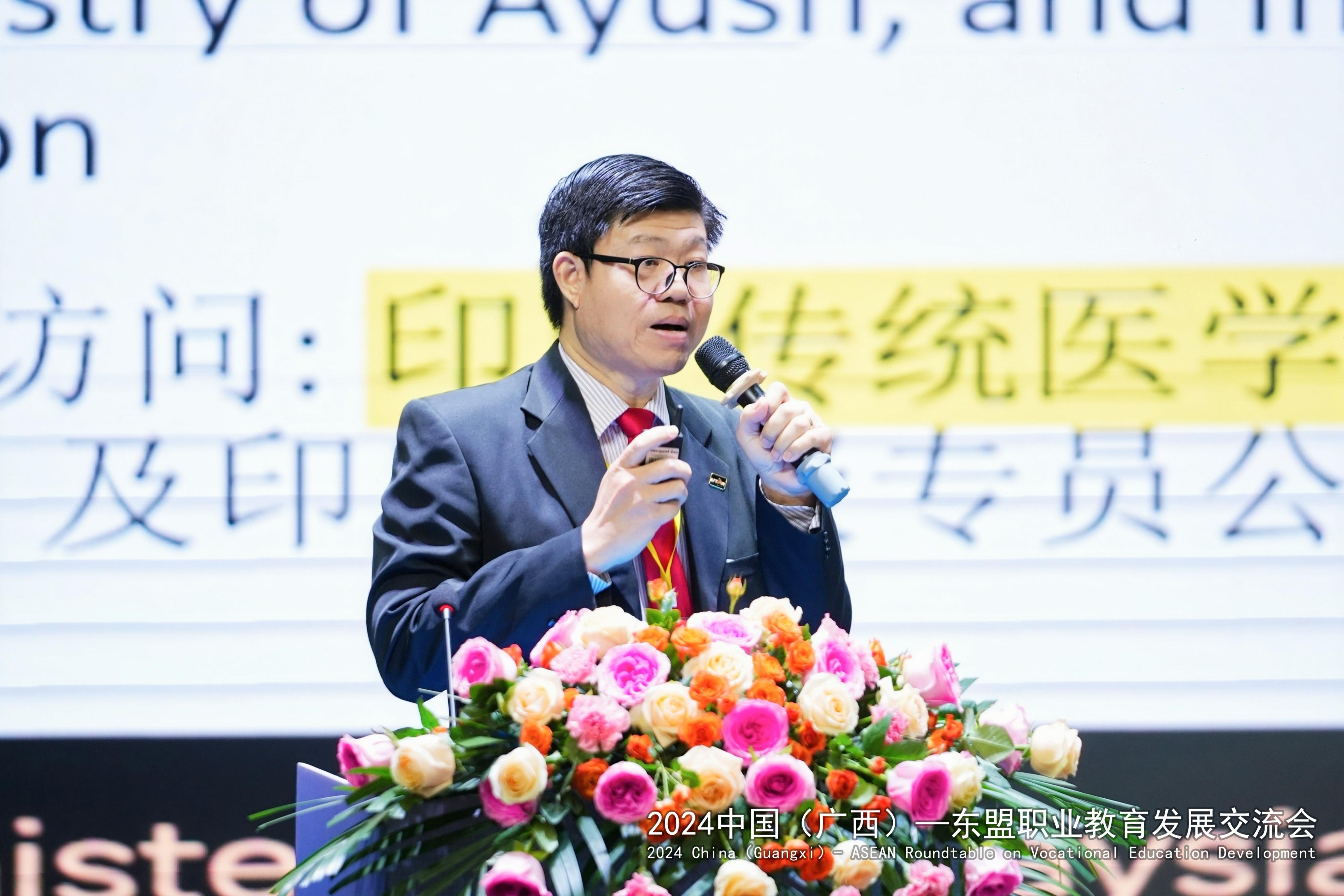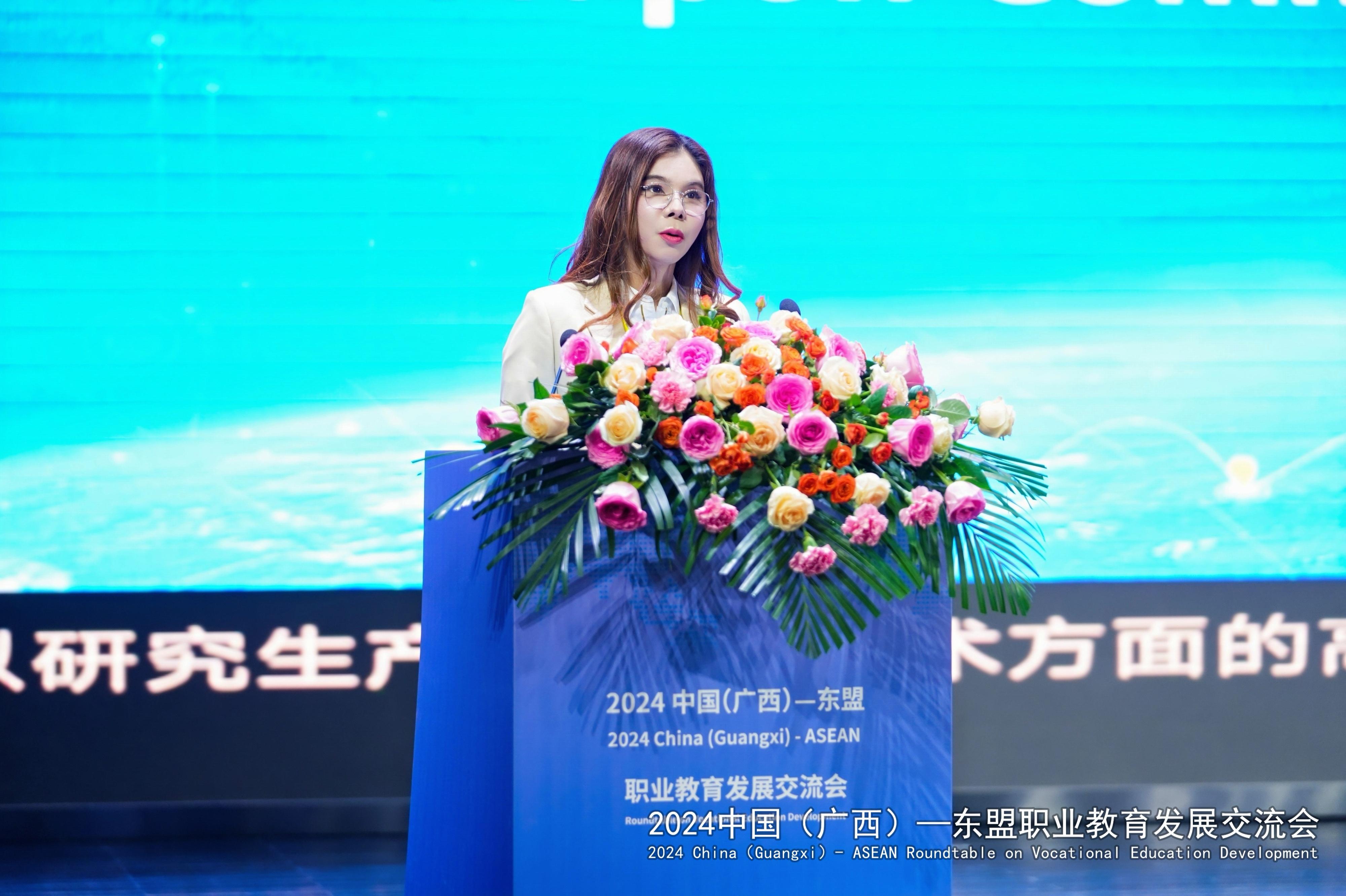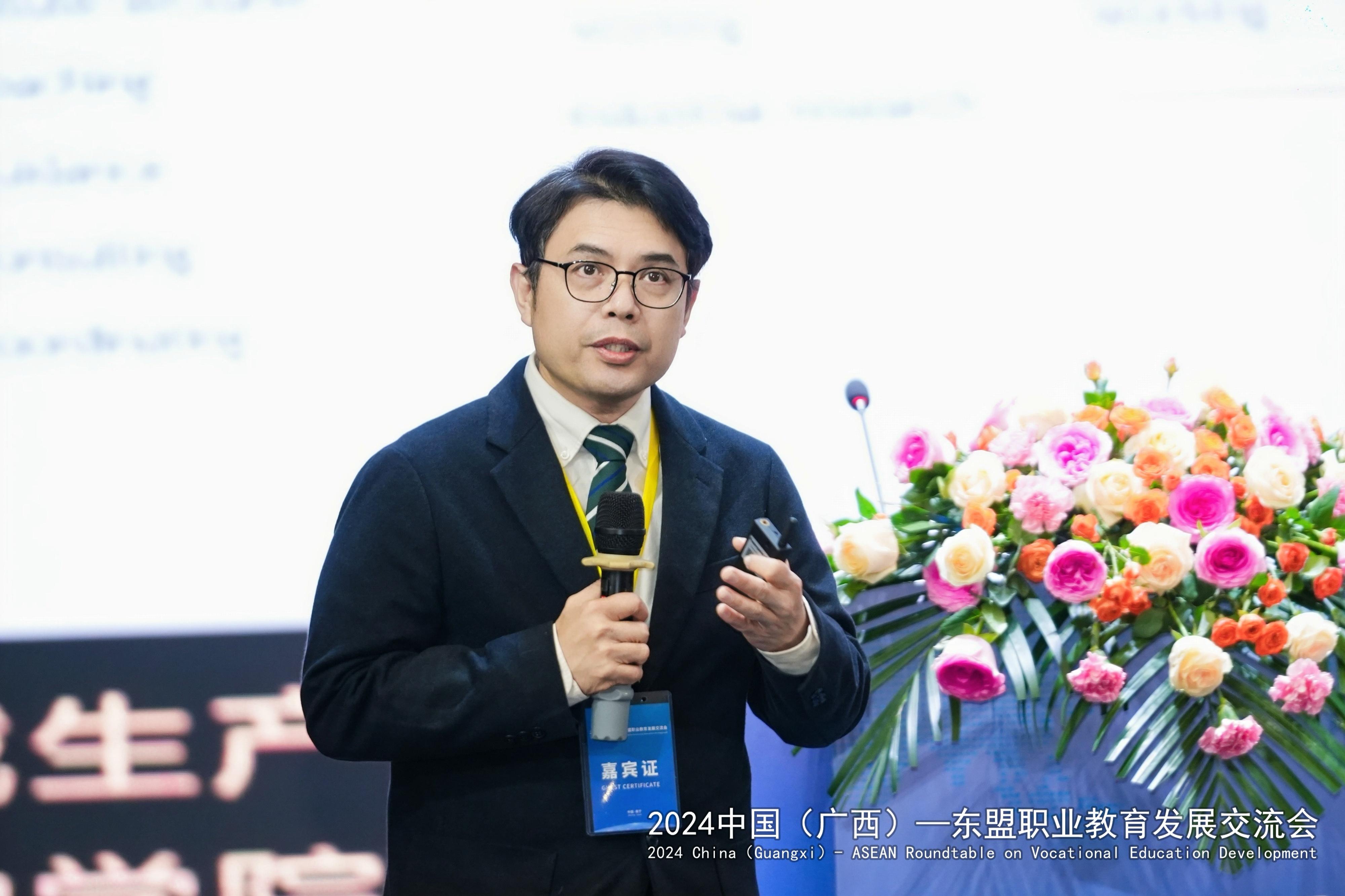 中国教育国际交流协会职业教育与培训部主任翟金鸣在演讲中深入剖析了当前中国与东盟在职业教育领域合作的重要意义与广阔前景。基于在职业教育合作方面取得的丰硕成果,为推动中国与东盟职业教育合作迈向新的高度,指明了深化融合的发展方向,提供了切实可行的发展路径。