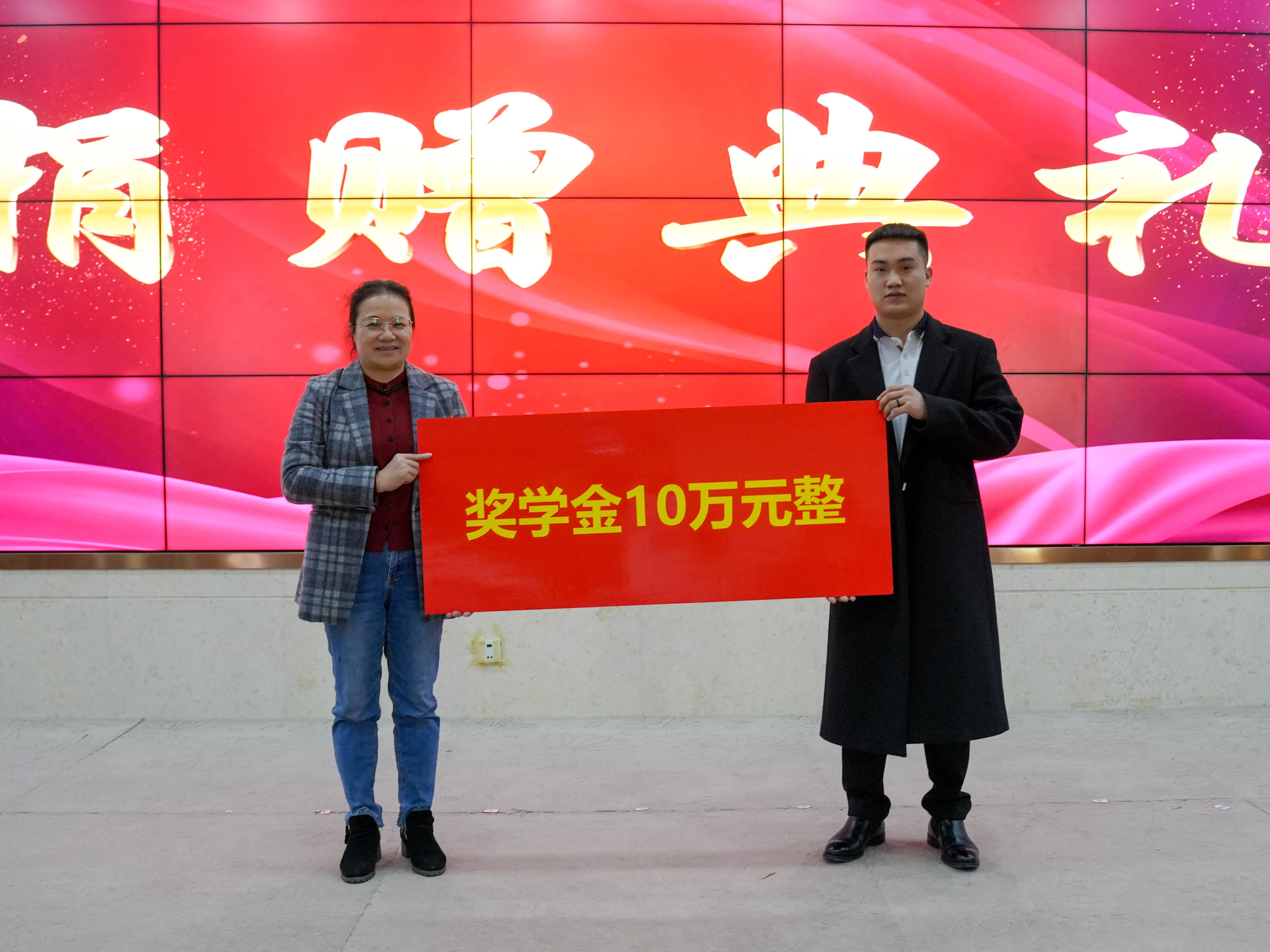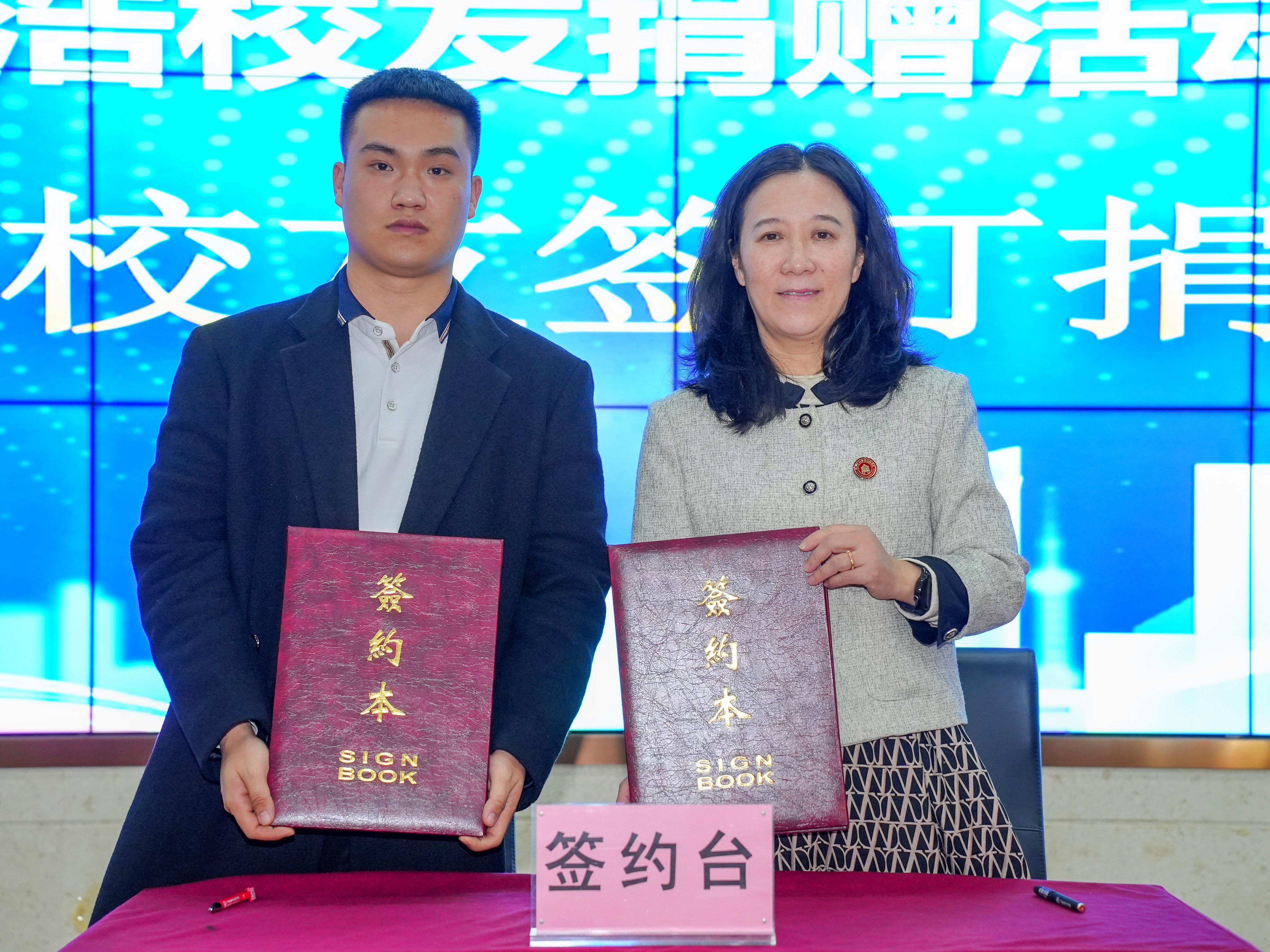 莫海燕校长首先对窦浩校友在百忙之中抽出时间回到母校表示最热烈的欢迎,并代表全校师生对窦浩同学的慷慨捐赠表示衷心的感谢。莫海燕校长指出校友们的成功是母校最大的骄傲。窦浩同学就是其中的优秀校友代表,他在校期间开始创业,白手起家,不到3年的时间在不同的领域取得辉煌的成就,涉及金融、商贸、文旅和康养等多个板块,学校为他感到无比自豪。母校正是因为有了窦浩一样的校友们的支持和帮助,才能够在教育领域不断发展和壮大,校友们的善举将激励更多的学生追求卓越,为母校争光。