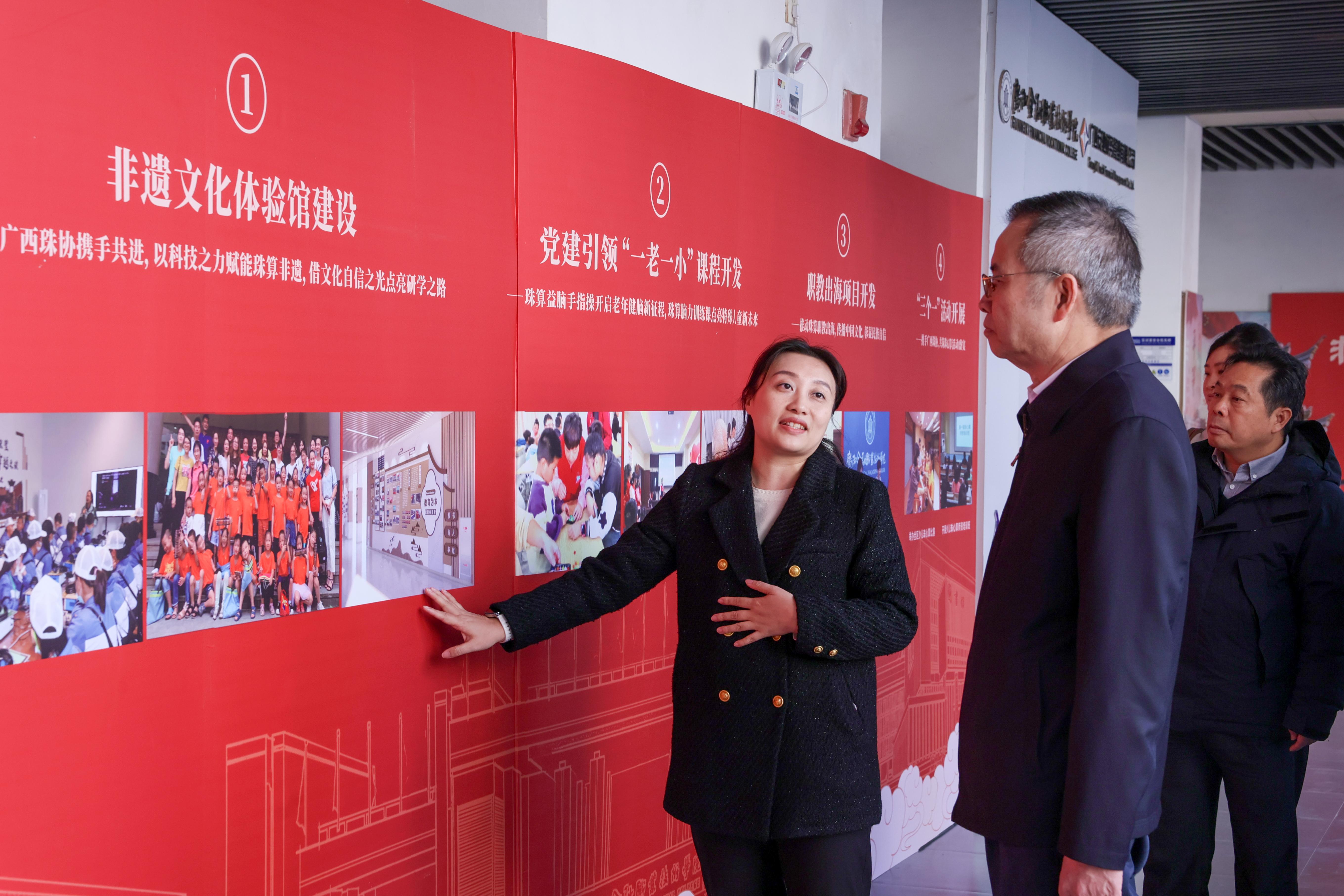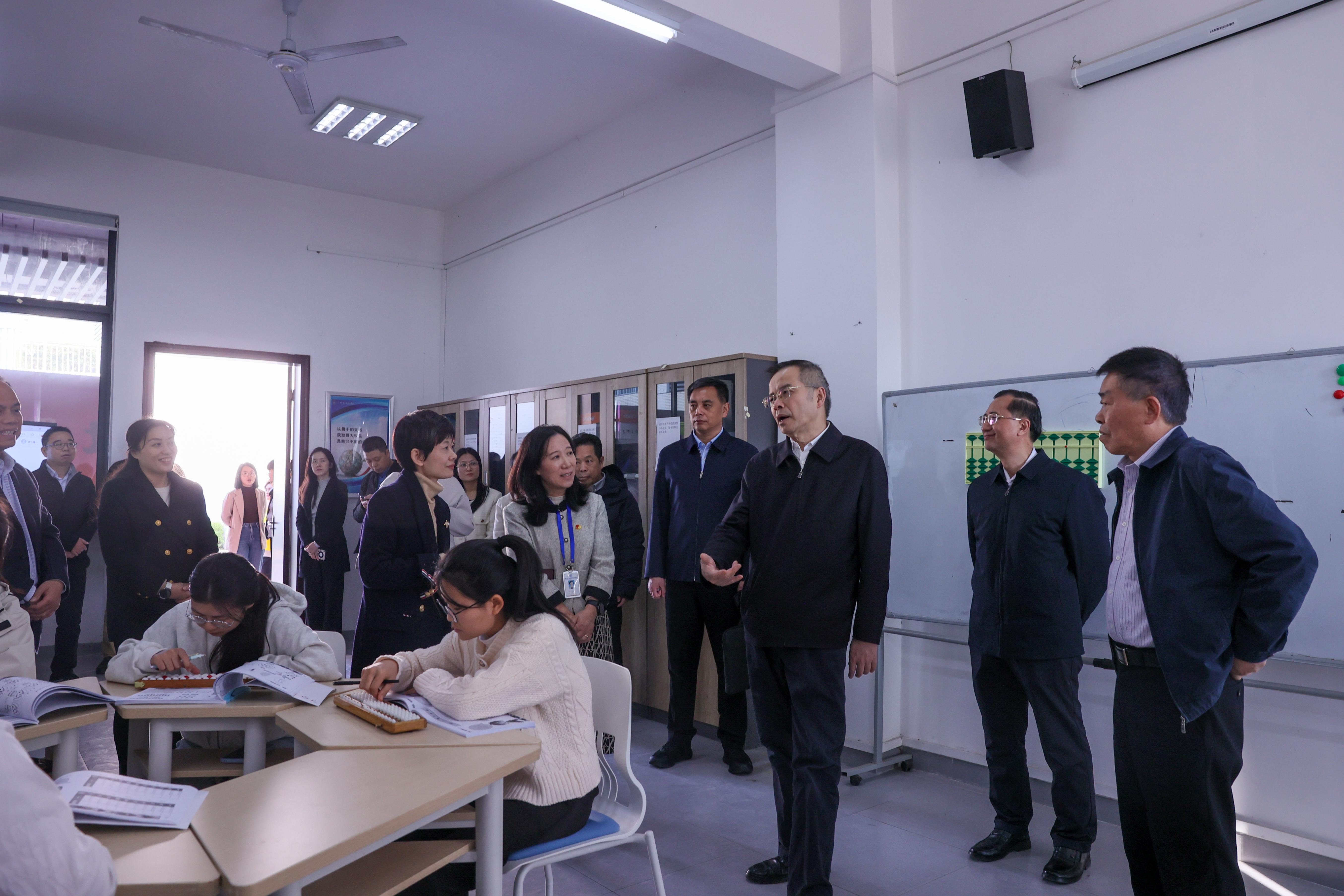 2024年12月18日,中国珠算心算协会会长欧文汉、常务副会长程北平、秘书长赵相翼、副秘书长闫晓茗、秘书时宝荣一行五人,在广西壮族自治区财政厅党组成员、副厅长陈海涛,会计管理处相关负责人、广西珠算心算协会秘书长等陪同下,到访伟德官网开展关于珠算文化非遗传承和珠心算教育教学推广普及情况的实地调研。