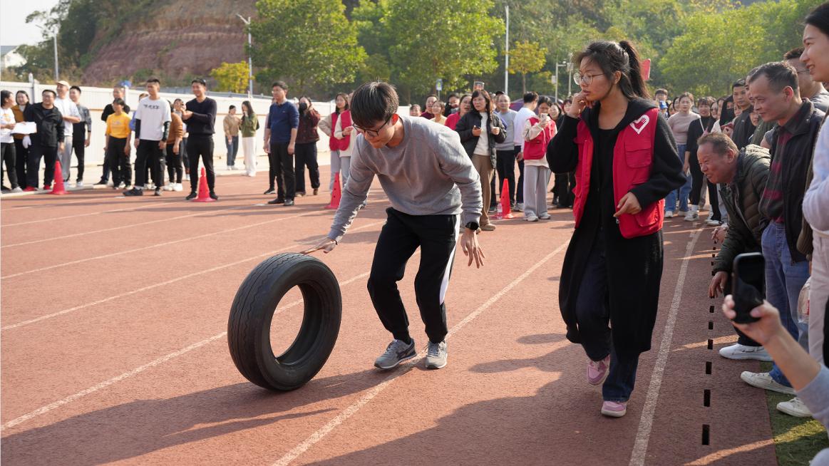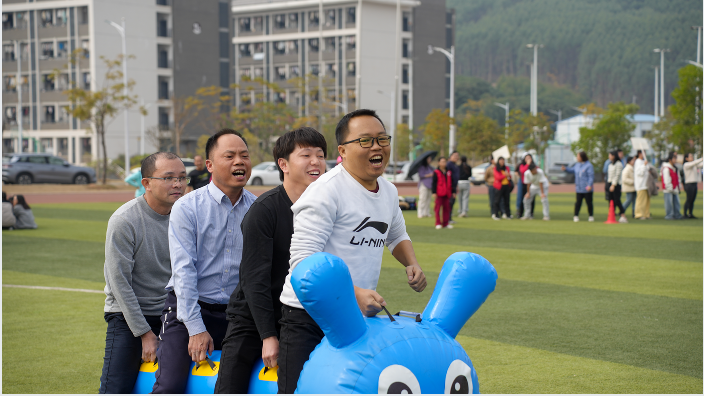 首先开始的是趣味运动会环节。毛毛虫接力便将气氛点燃,教职工们齐心协力、步伐一致地向着终点冲刺,现场加油声、欢笑声此起彼伏。背靠背夹球接力赛,大家配合默契,展现出团结协作的精神风貌。滚轮胎比赛中,选手们各显身手,在赛场上你追我赶,充满了趣味性和挑战性。整个运动会过程紧张激烈又不失欢乐祥和,充分展现了教职工们积极向上的团队协作精神。