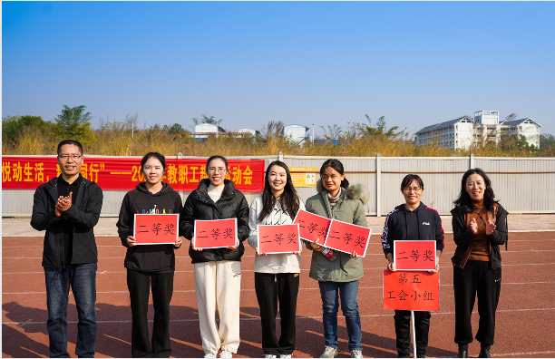 校党委书记李高岩、校长莫海燕为获得二等奖工会小组颁奖