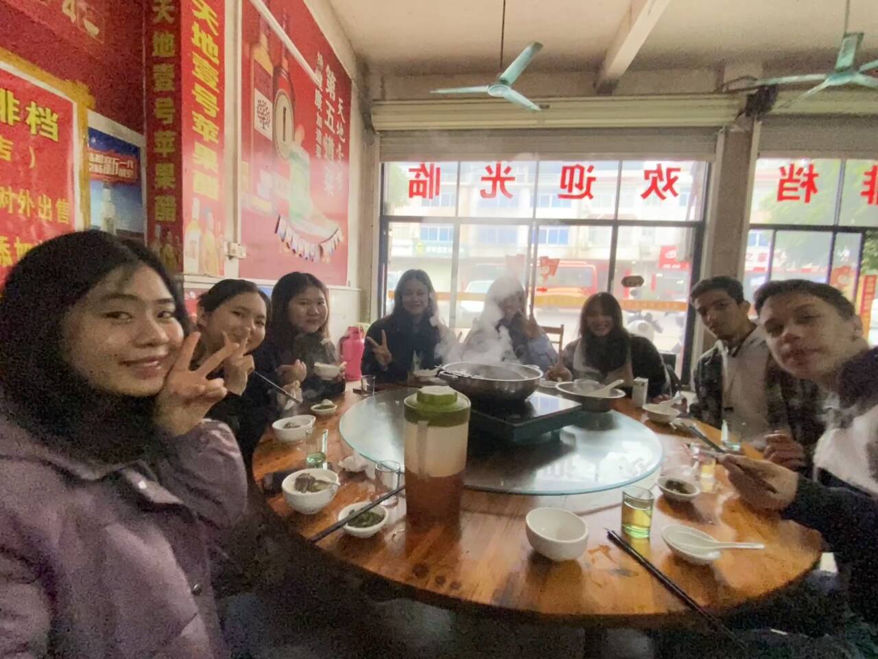 学生们和张冠老师品尝特色火锅