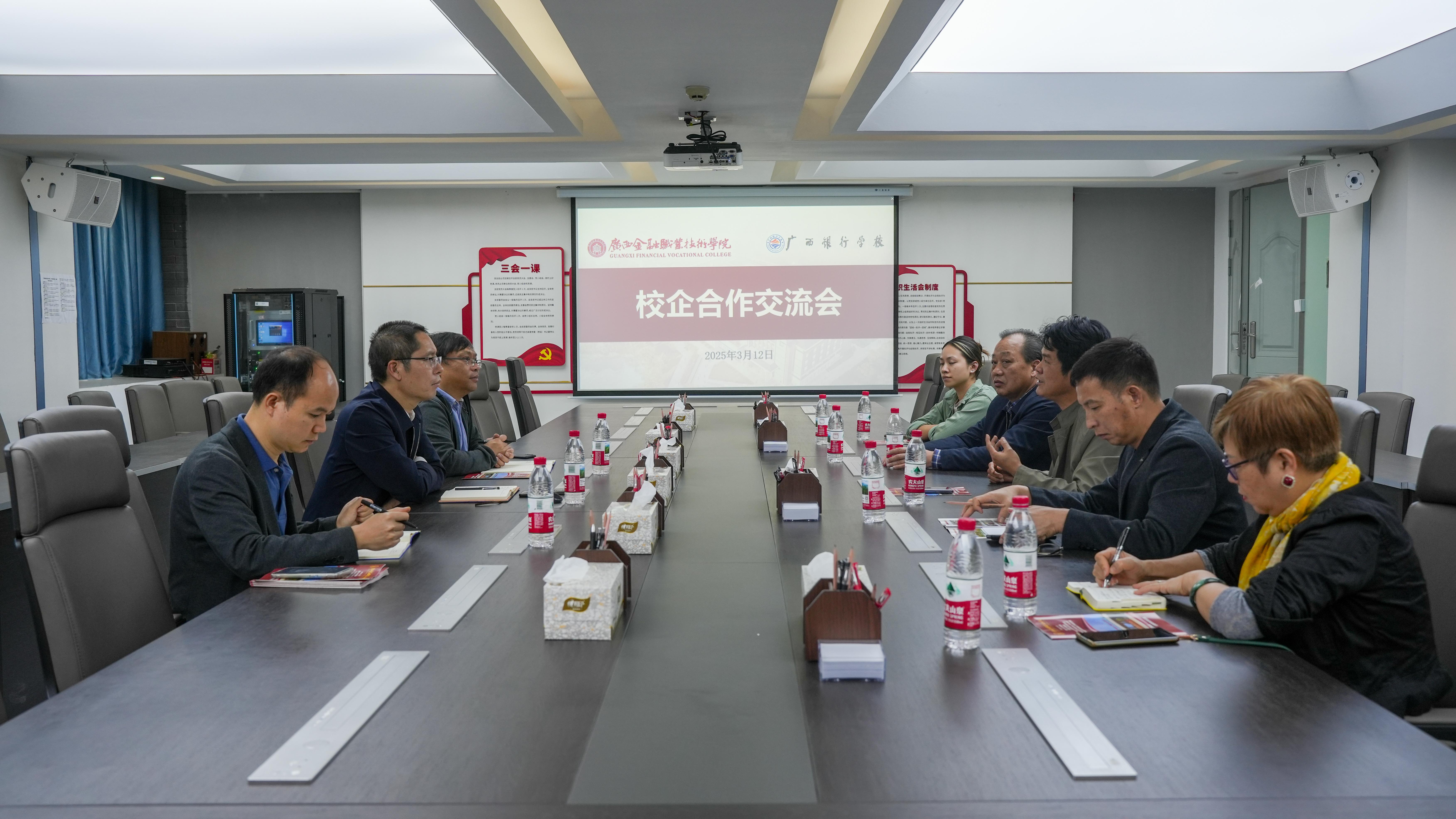 3月12日,广西美加美绿色种养有限公司董事长刘功锋、广西壮牛水牛乳业有限责任公司董事长农天懂及两公司高管等一行受邀到访伟德官网,与校党委书记李高岩就校企合作事宜进行了深入洽谈。招生就业处处长石利军、副处长杨吉才等参会交流。