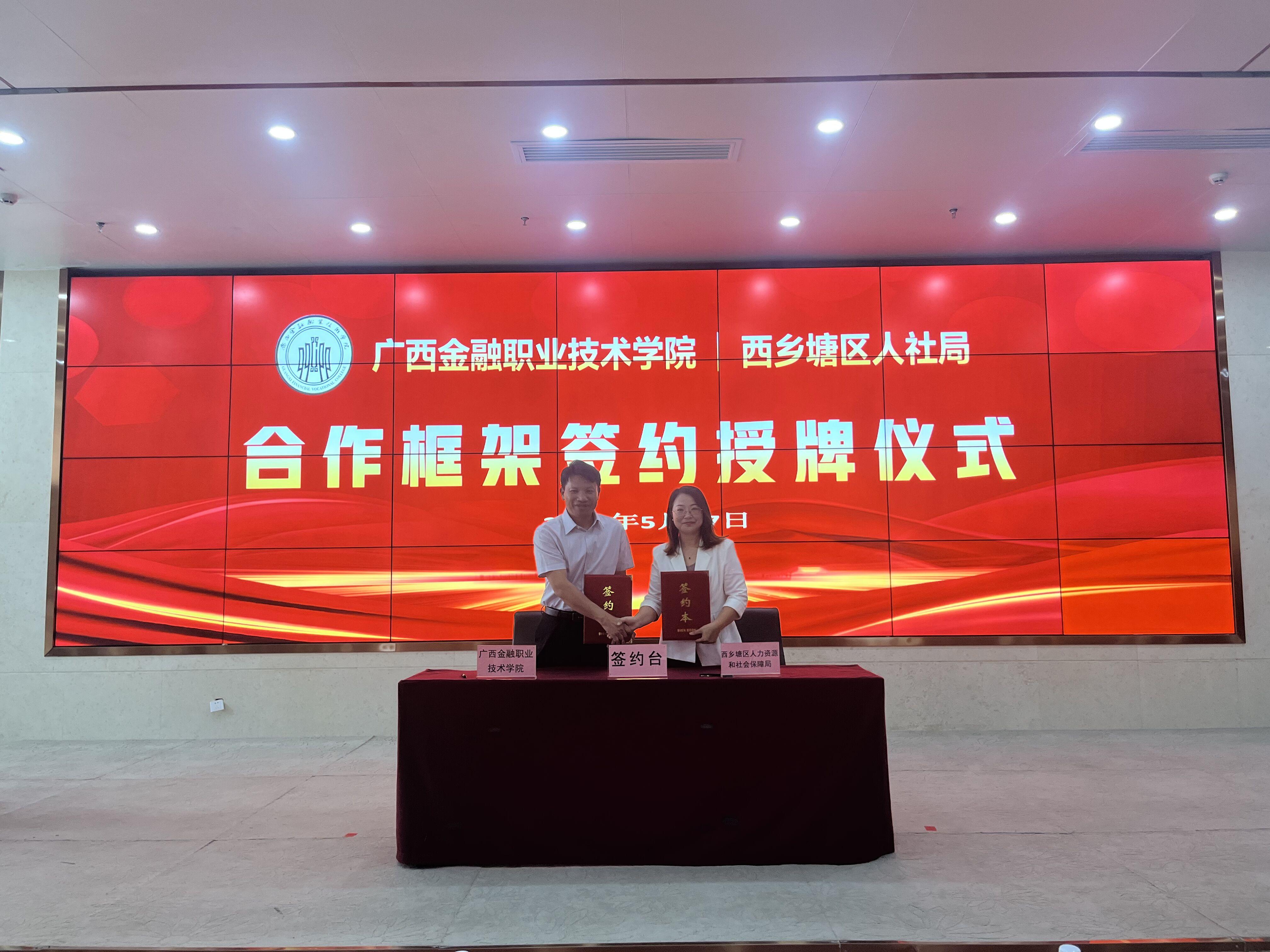 为推动用人单位与毕业生高效精准双向对接,助力毕业生更加充分更高质量就业,5月27日,学校与南宁市西乡塘区人力资源和社会保障局在伟德官网西校区举办“火热青春·就在西乡塘”2025年伟德国际victor1946&西乡塘区人社局合作框架签约授牌仪式暨校园招聘会。学校党委副书记、纪委书记刘华政、西乡塘区人社局局长苏岸芷出席本次活动并签署校政合作协议。西乡塘区人社局、企业代表和学校招生就业处、校团委、各二级学院100多名师生代表参加此次签约授牌仪式。