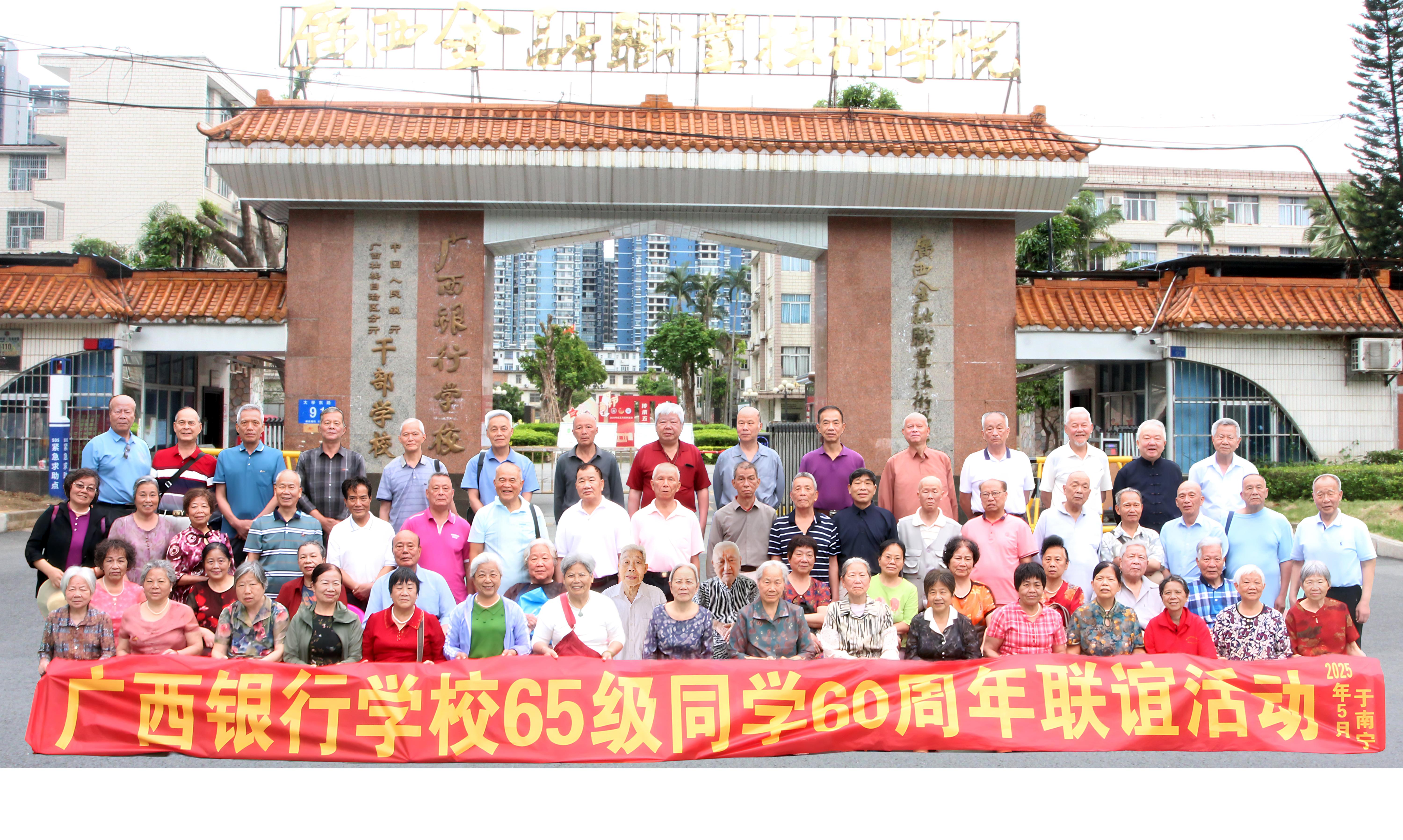 据了解,广西银行学校1965级共有230余名学子,他们在校舍简陋与教材匮乏的办学条件下,吃苦耐劳、刻苦奋斗顺利完成学业,毕业后选择扎根广西,将人生最宝贵的光阴融入八桂金融事业:有人奔赴边远山区的银行网点,有人深耕城市金融一线成长为行业专家;更有12位校友在校期间响应号召应征入伍,在部队淬炼十几载甚至二十余年,转业后仍将军人作风融入金融岗位直至退休。半世纪岁月流转,这届校友践行“为金融事业奉献”的誓言,他们中有5人成长为厅级干部,17人担任处级职务,更有众多科级骨干深耕基层,他们以青春的热血与一生的坚守,为学校“崇德尚人”的校训作了最生动的诠释。