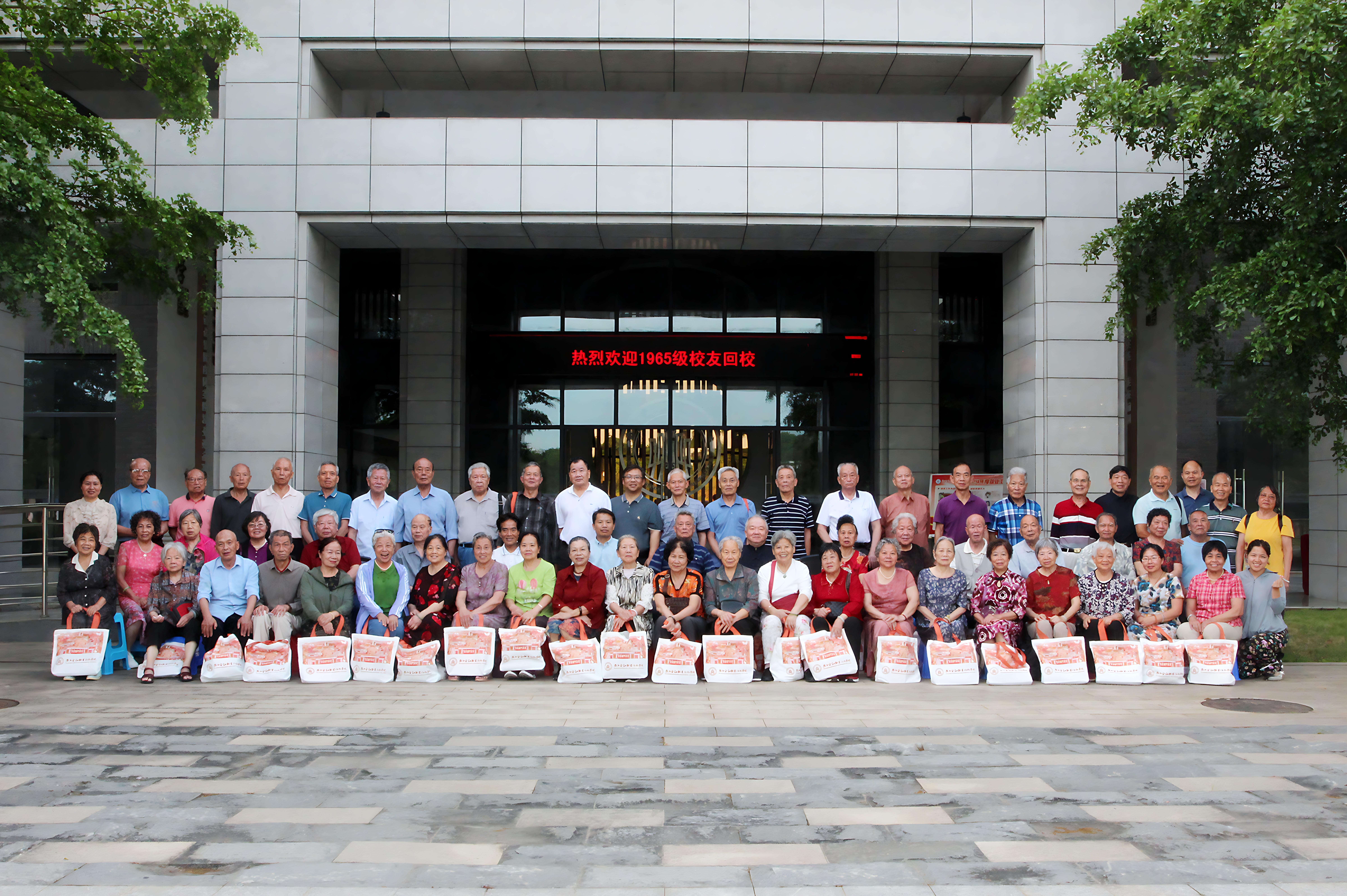 1965级校友在西校区合影留念