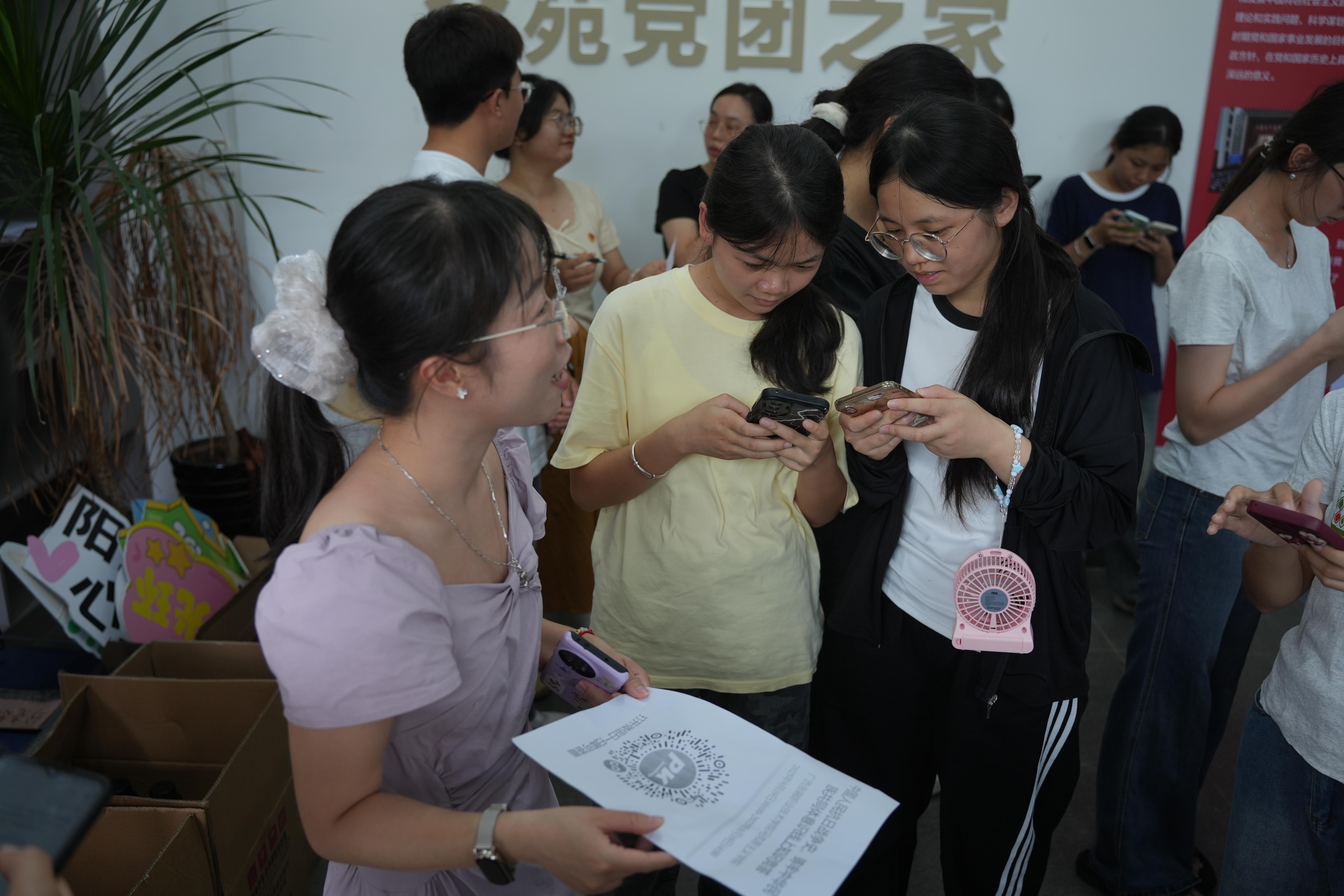 本次活动设置知识宣讲和知识竞答两个环节。在宣讲环节,马克思主义学院王幽含、钟雨晴两位思政课教师围绕抗日战争史中的关键事件与铸牢中华民族共同体意识的核心内涵,以“微型讲解+即时互动”的形式展开宣讲,引导师生在问答中感悟历史厚度与精神力量,来自人工智能学院的杨晅同学、投资与保险学院的汪子鹤同学和张凯同学现场分享了参加宣传学习的收获和体验。知识竞答环节则将学习热情推向高潮,师生通过扫描现场二维码进入答题系统,每当屏幕显示“答题成功”,参与者便能即时领取定制书签、主题文创等精美礼品,在轻松竞技中巩固所学,现场掌声与欢笑声此起彼伏,让理论学习在生动实践中入脑入心。