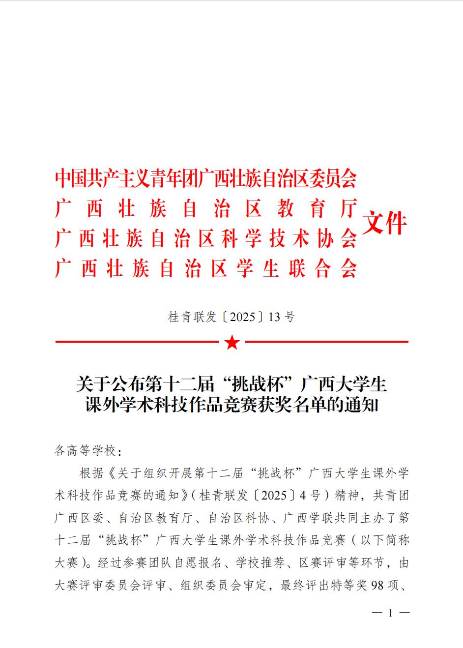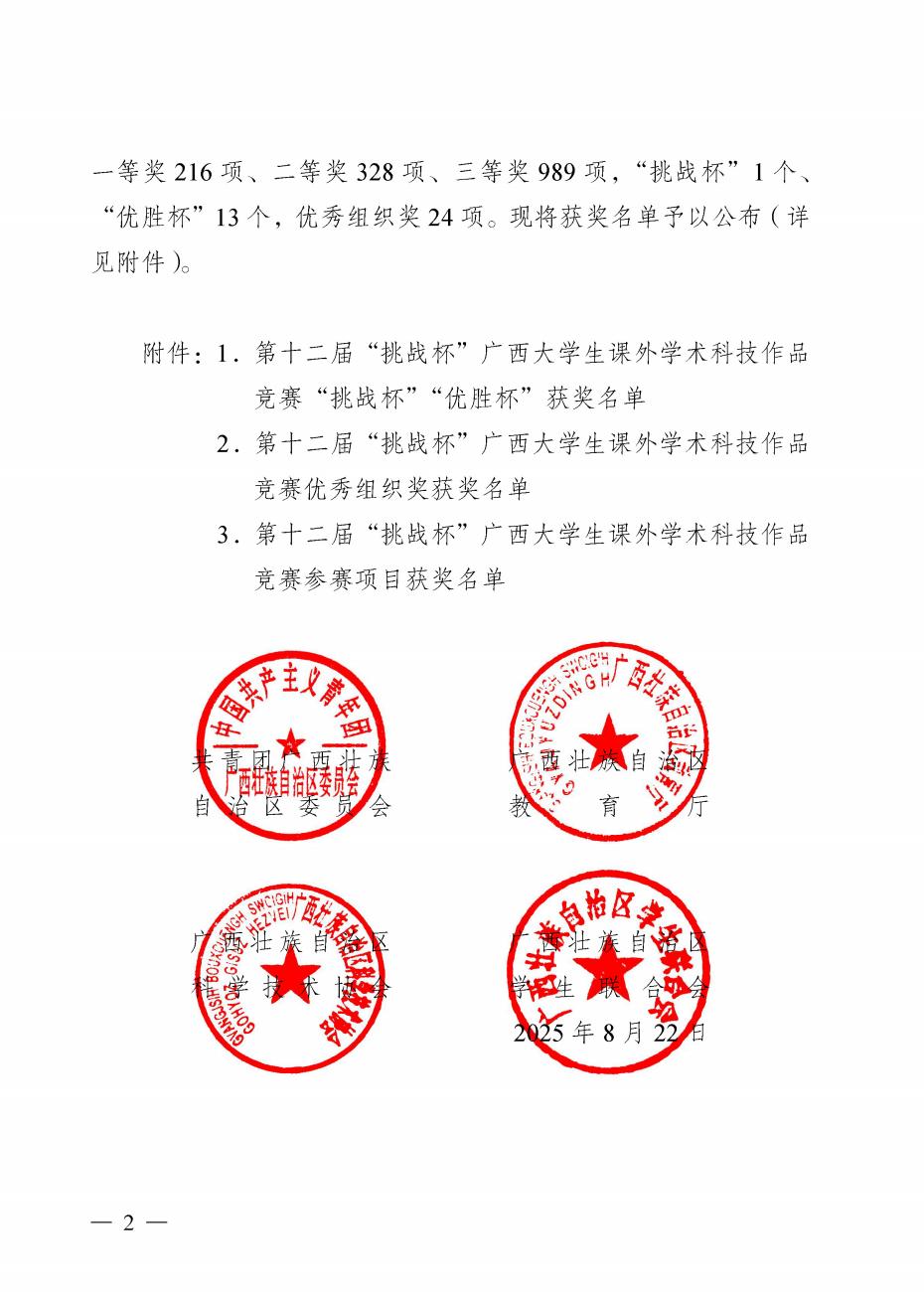 近日,由共青团广西区委、自治区教育厅、自治区科协、广西学联共同主办的第十二届“挑战杯”广西大学生课外学术科技作品竞赛获奖名单正式公布。本次比赛吸引全区79所高校、超10万名师生踊跃参与,竞争异常激烈。