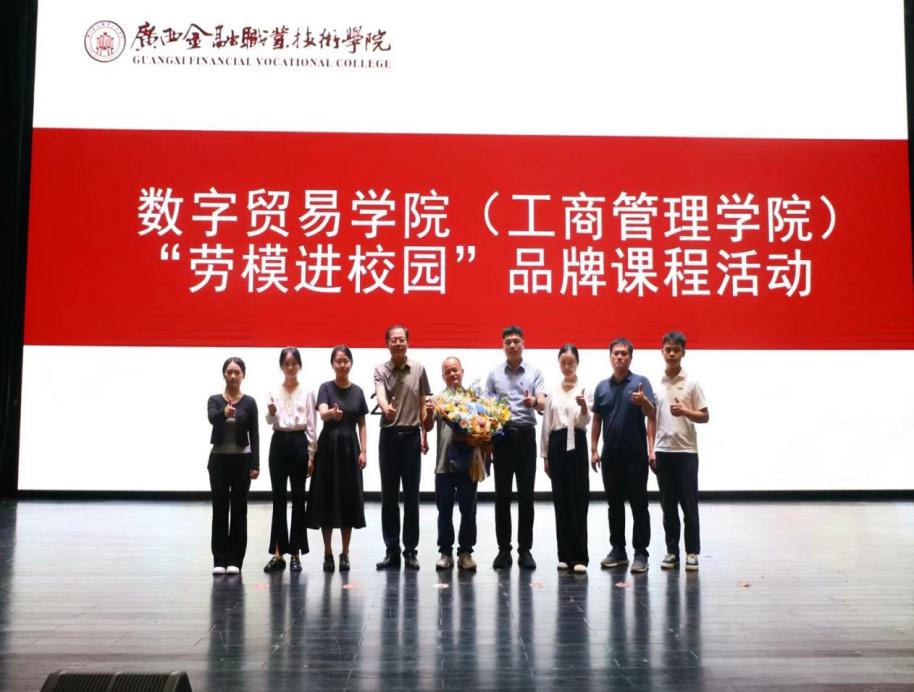 广西电子商务协会党总支书记、执行会长张学清结合当前数字经济背景下电商行业的发展趋势,指出数字贸易领域正迎来广阔机遇,同时也对人才的专业素养与实践能力提出更高要求。他表示,劳模黄忠文的奋斗故事,是劳动精神的生动写照。希望同学们以劳模为榜样,将专业学习与行业需求紧密结合,主动参与实践锻炼,为电商领域发展注入新活力。