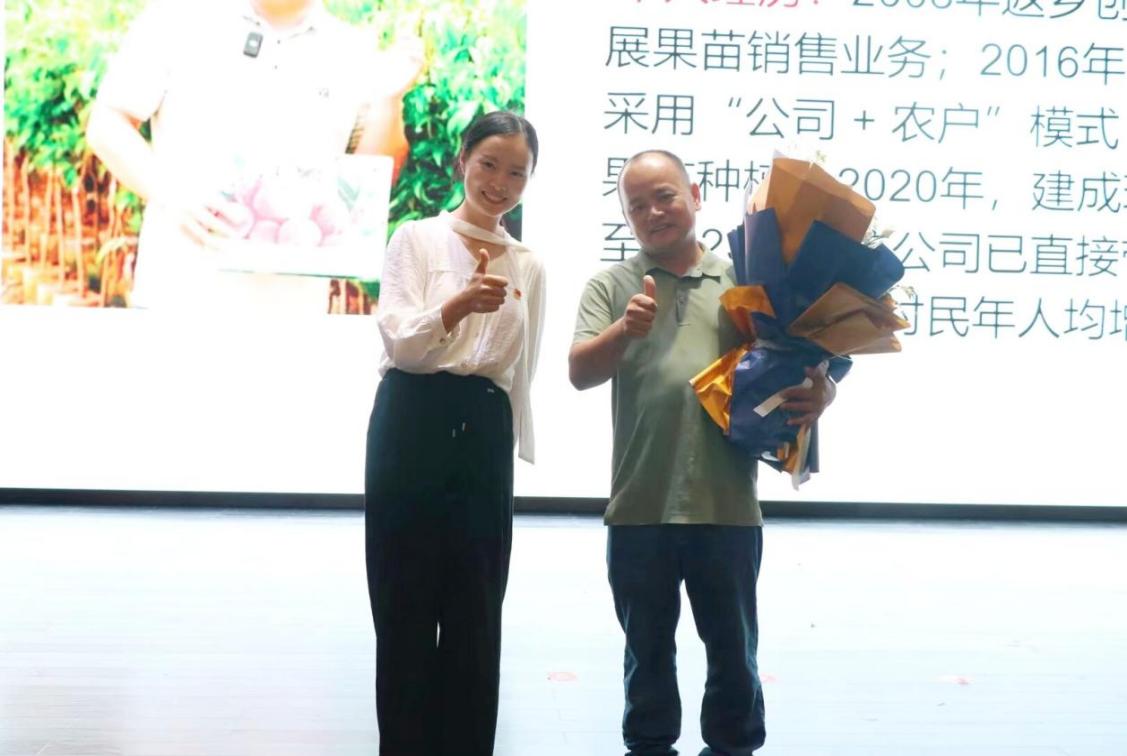 广西壮族自治区劳动模范黄忠文结合自身丰富的创业经历与显著成果,向在场师生分享了农业领域创业的实践心得与宝贵经验,为农村电子商务等的学生提供了鲜活指引。他结合数字贸易在农业领域的应用实践,多次强调专业知识的重要性,勉励在场学生“既要扎实掌握电商运营、市场营销等专业技能,也要培养吃苦耐劳的品质,为乡村振兴贡献青春力量”,用朴实的话语表达出对青年学子的深深期许。