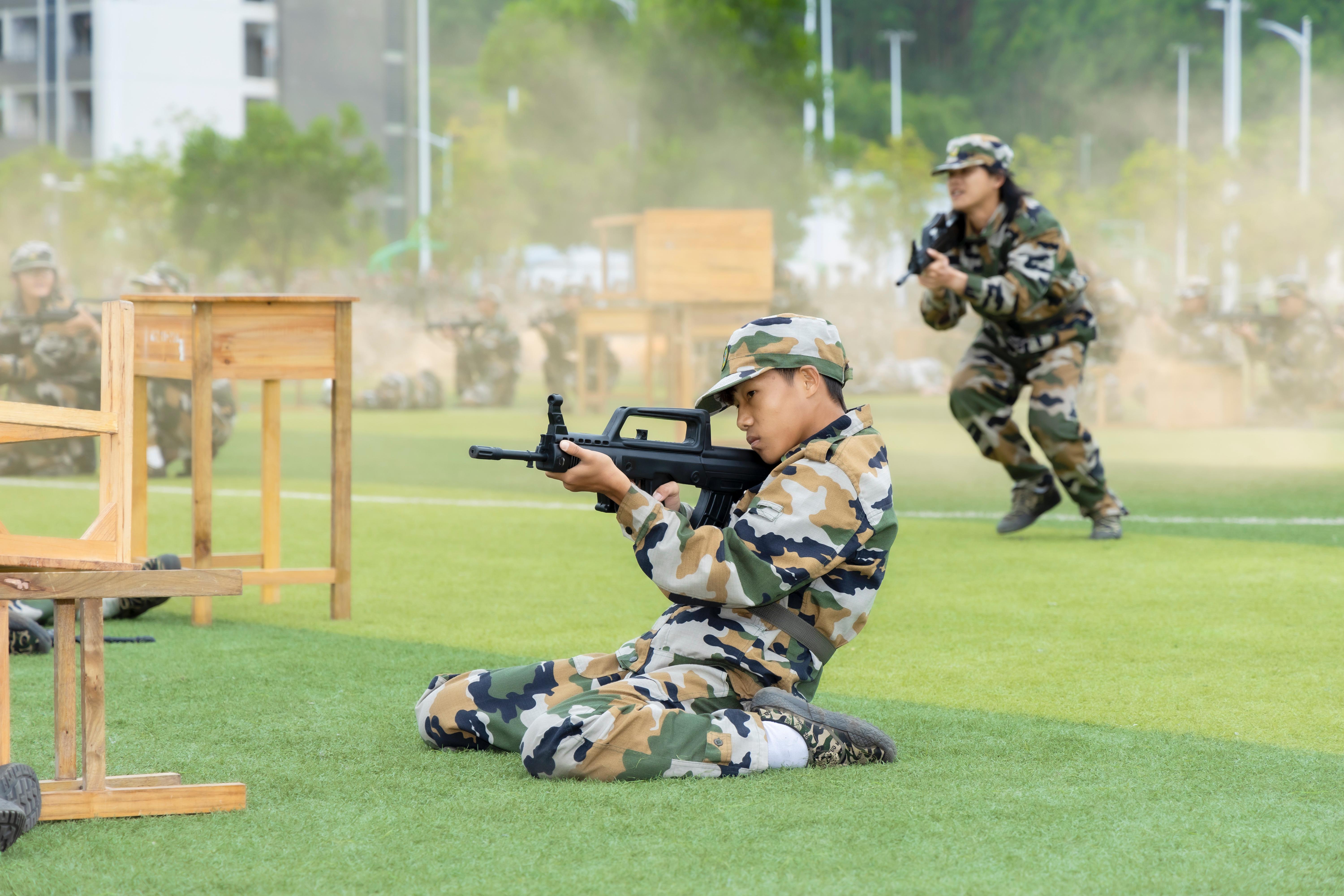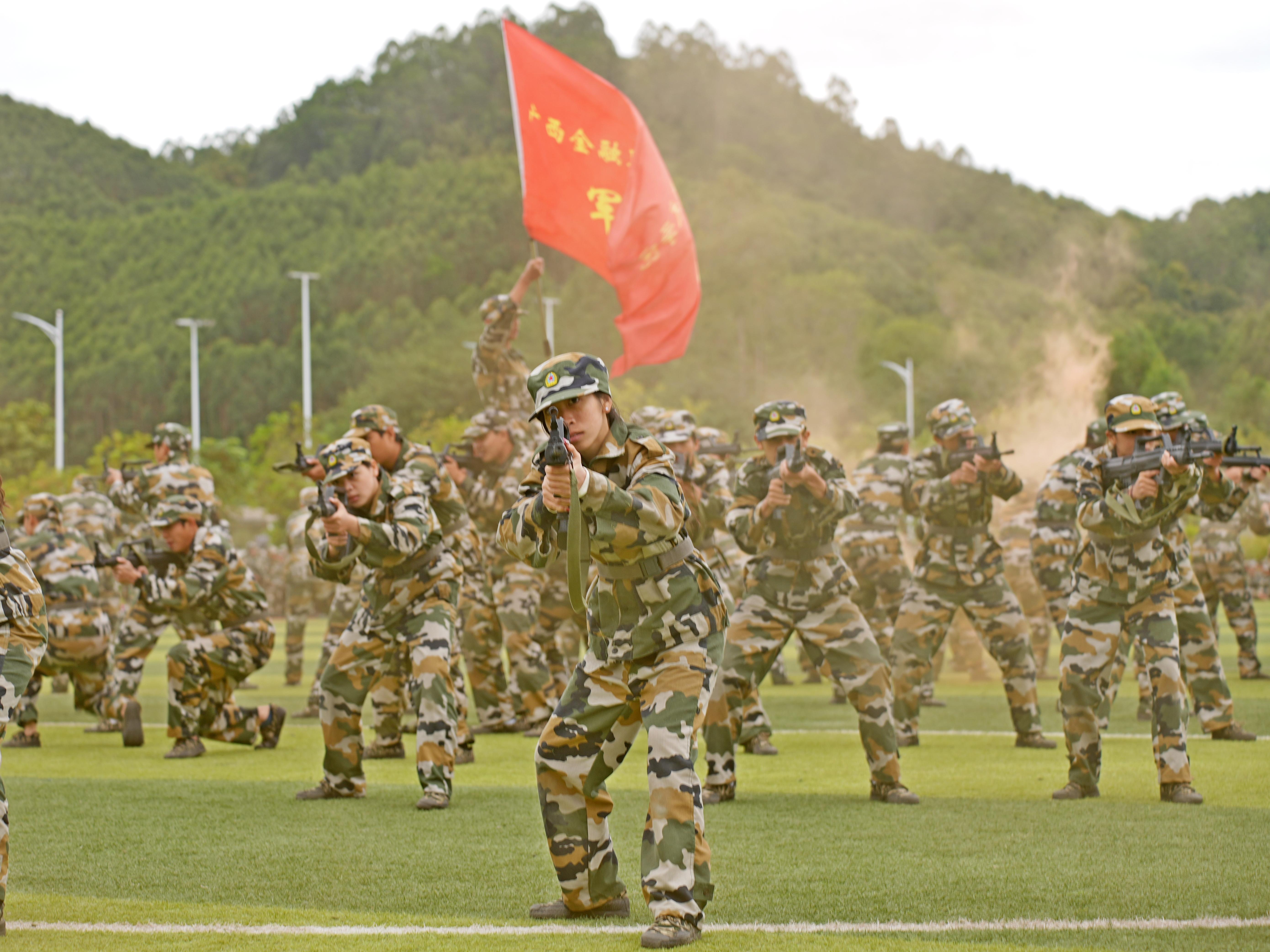 随后各方队依次展开军事技能汇报表演:分列式行进气势如虹,擒敌拳演练刚劲有力,刺杀操展示杀气凛凛,匕首操汇演灵动迅猛,捕俘拳演示招招制敌,警棍盾牌操表演协同默契,战术科目实景模拟更将现场气氛推向高潮。参训学生以坚韧的意志、凝聚力量的口号、彰显纪律意识的整齐队列,以及踏响拼搏节拍的铿锵步伐,全面展示了军训成果,更生动诠释了这场青春洗礼的深层意义——它让金院学子在汗水中淬炼了品格,在协作中凝聚了力量,在坚持中涵养了斗志,最终以饱满的热情与昂扬的姿态,为大学生活注入了永不褪色的奋斗底色。