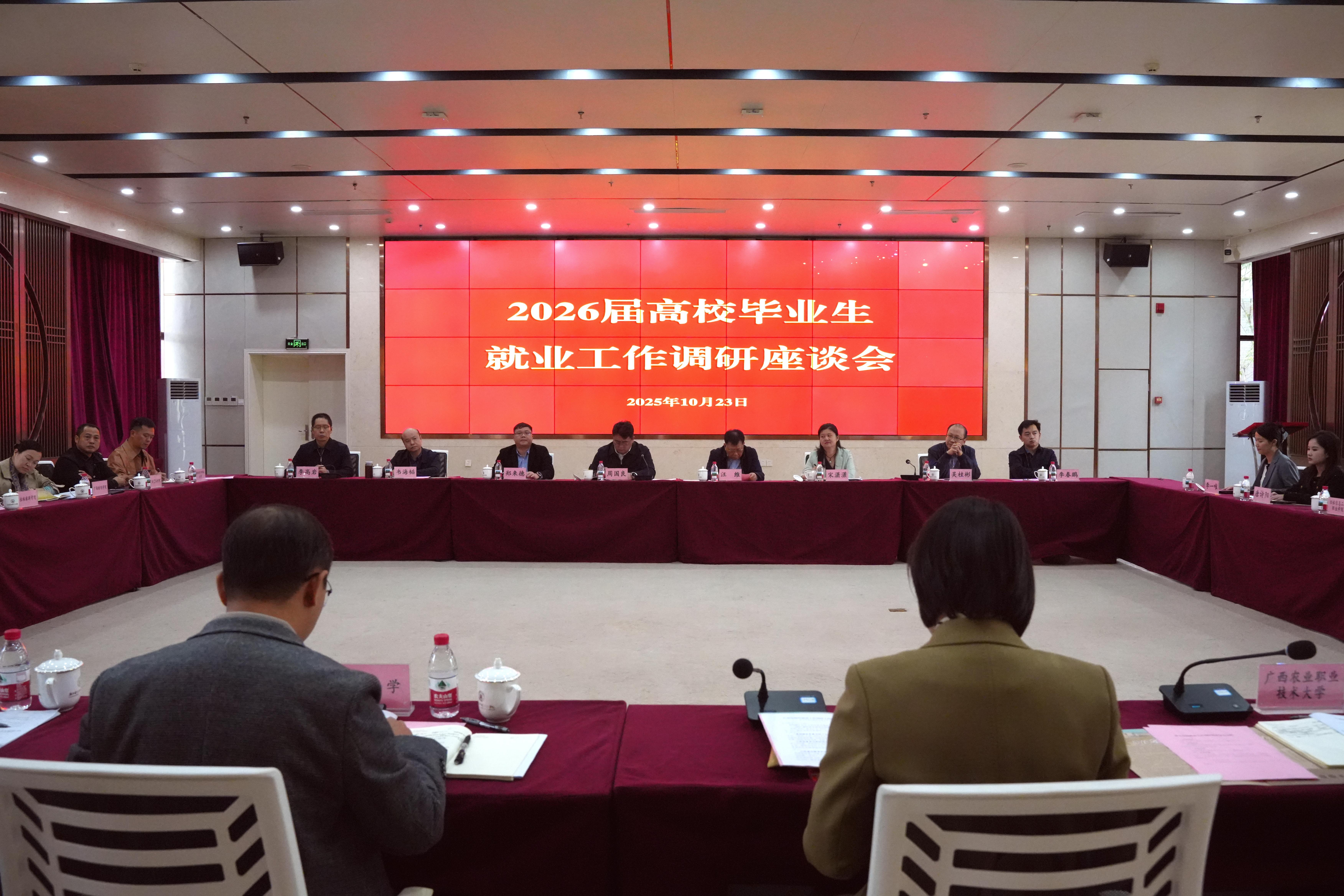 座谈会上,广西大学、广西科技大学、南宁师范大学、桂林医科大学、广西农业职业技术大学、伟德国际victor19466所高校代表作现场交流发言;14所高校代表围绕当前高校毕业生就业工作面临的共性问题深入探讨并提出工作建议。