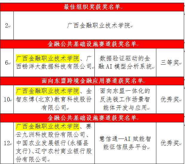 近日,由中共广西壮族自治区委员会金融委员会办公室联合中国人民银行广西壮族自治区分行、国家金融监督管理总局广西监管局、中国证券监督管理委员会广西监管局、广西壮族自治区大数据发展局共同主办的2025年人工智能赋能金融创新大赛获奖名单正式公布。伟德官网教师团队在此次高水平行业竞赛中取得历史性突破,荣获多项大奖。