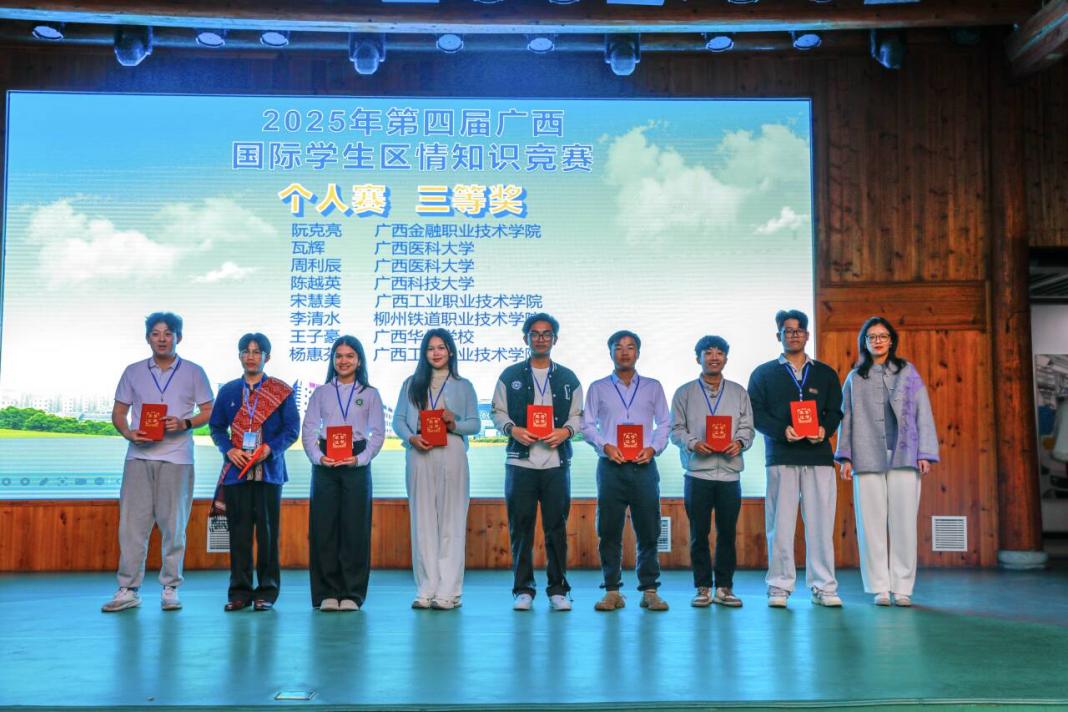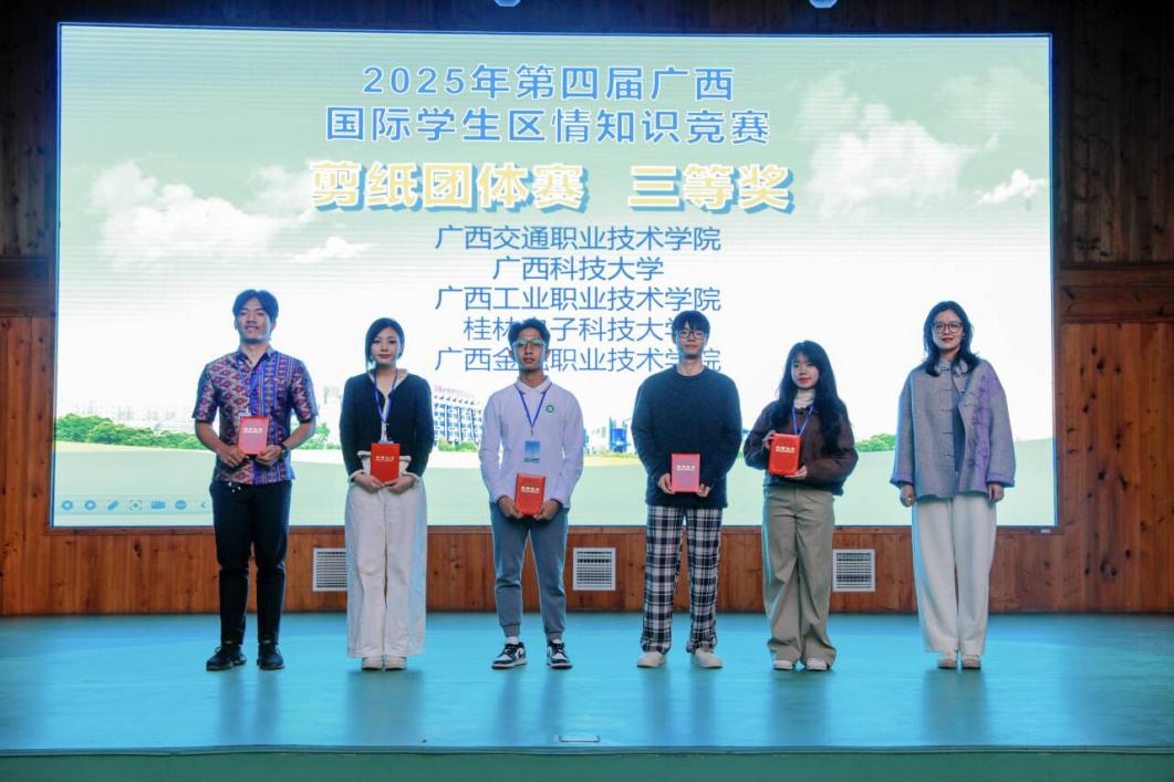 为深化国际学生对广西区情与中华文化的认知,搭建跨校交流与文化互鉴平台,第四届广西国际学生区情知识竞赛于2025年11月27日至28日在柳州城市职业学院顺利落幕。伟德官网6名国际学生参加比赛,凭借扎实的知识储备与出色的团队协作,最终斩获个人赛、团体赛双项三等奖,展现了伟德官网国际化教育的良好成果。其中2024级跨境电子商务专业的阮克亮同学(越南)荣获个人赛三等奖;郑吉梅(柬埔寨)、阮富荣(越南)、陈千丽(柬埔寨)三位同学则在剪纸团体赛中获得三等奖。