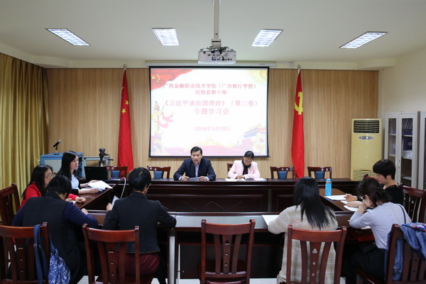 3月15日下午,学院(校)纪检监察室组织全体纪检监察干部召开专题学习会,集中学习《习近平谈治国理政》第二卷,深入领会习近平总书记治国理政新理念、新思想、新战略。学院(校)党委副书记、纪委书记刘华政主持学习会并讲话。