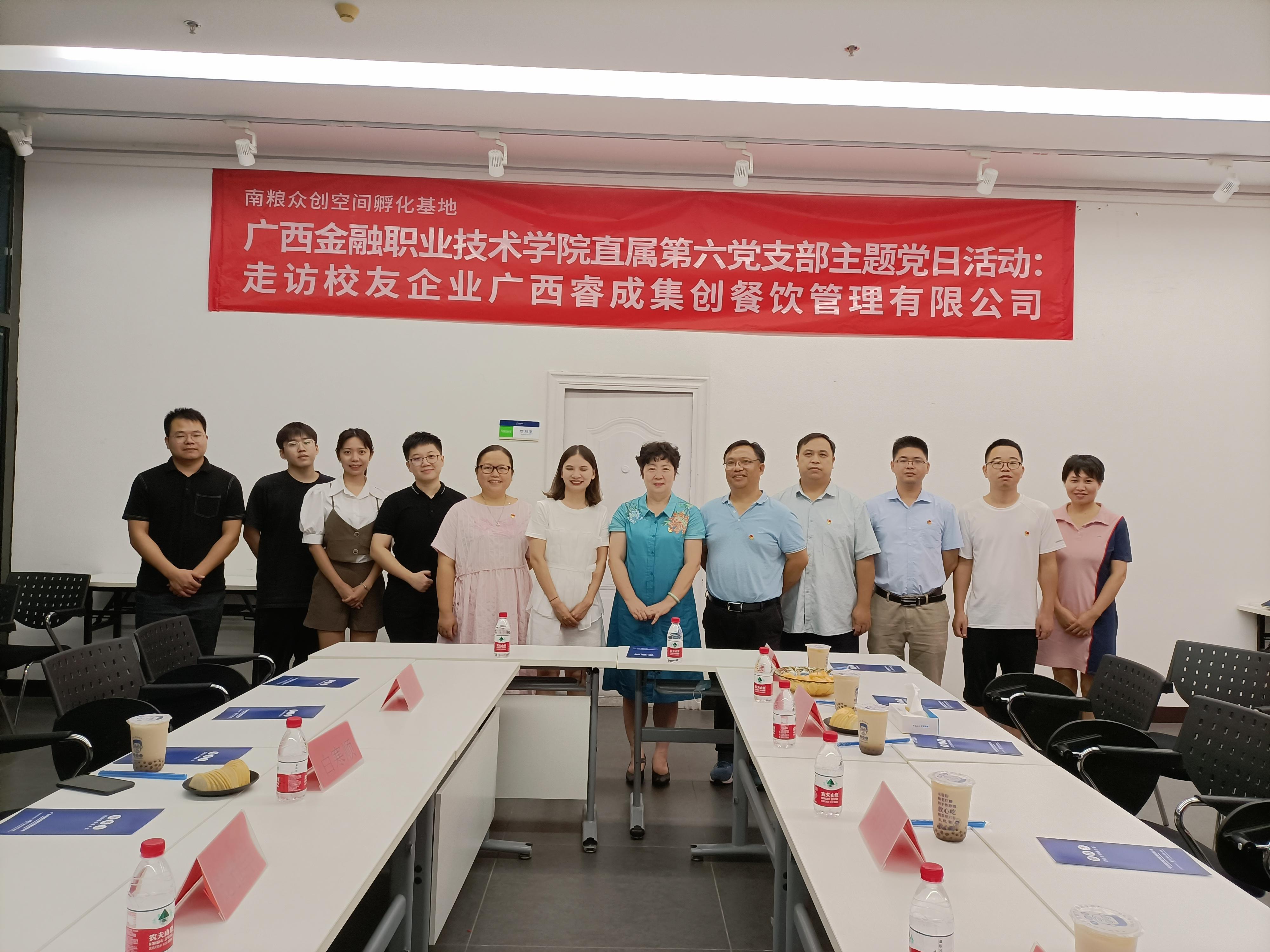 8月20日,伟德官网党委书记沈立君带领直属第六党支部前往伟德官网校友企业广西睿成集创餐饮管理有限公司开展主题党日活动。