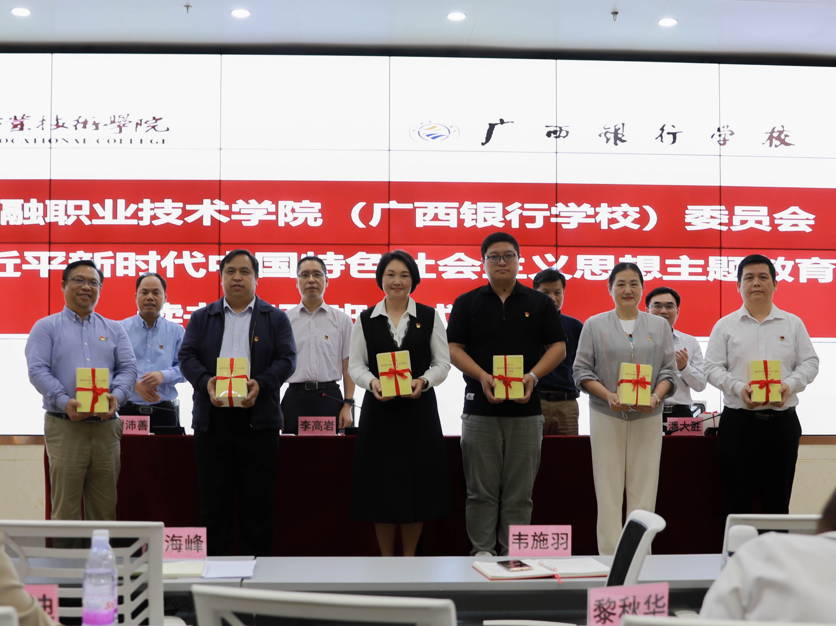 会上,学校领导代表学校党委向各党支部赠送学习贯彻习近平新时代中国特色社会主义思想主题教育学习书籍。